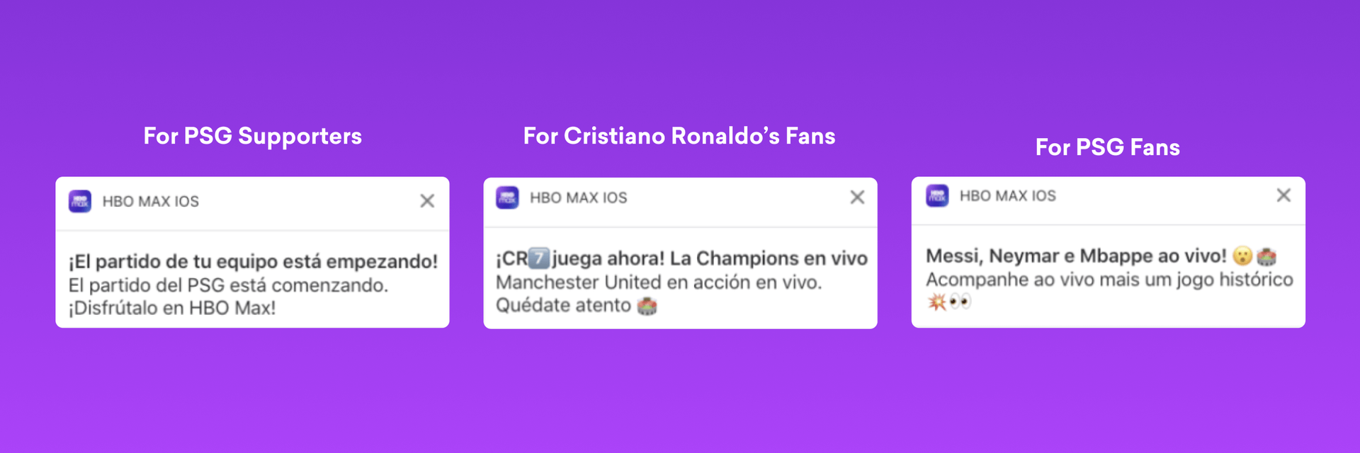 Finally, for Champions League soccer, viewers were sent a Simple Survey IAM asking who their favorite players and teams were. The data gathered from these strategies allowed HBO Max to fine-tune the content and frequency of their communications based upon the players and teams that viewers selected. Users in Latin America could expect personalized messaging about their favorite players and teams depending upon when they were playing.