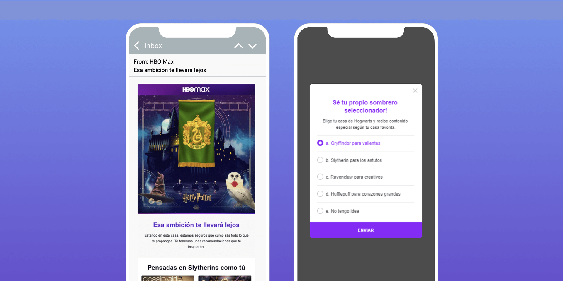 To increase interest and drive engagement for the streaming premieres of The Batman and Harry Potter 20th Anniversary: Return to Hogwarts, the HBO Max team in Latin America warmed up the fan bases from these two worlds, DC Comics and the Wizarding World, respectively, with Simple Survey IAMs asking users questions such as who was their favorite DC superhero, or which house in the Hogwarts School of Witchcraft and Wizardry was their favorite. Users who responded received a push notification from Braze recommending specific titles tailored to their responses, and were sent dedicated messaging and recommendations based on their past and predicted behaviors thereafter.