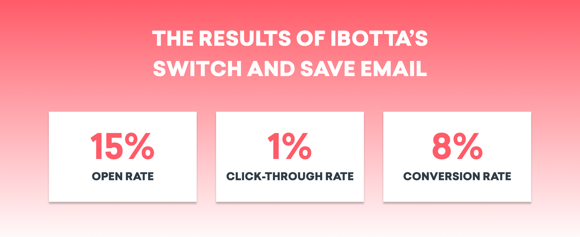By curating highly-personalized experiences, Ibotta drives high value and engagement when it comes to their users. The custom shopping list email has a 15% open rate, 1% click-through rate, and 8% conversion rate.
