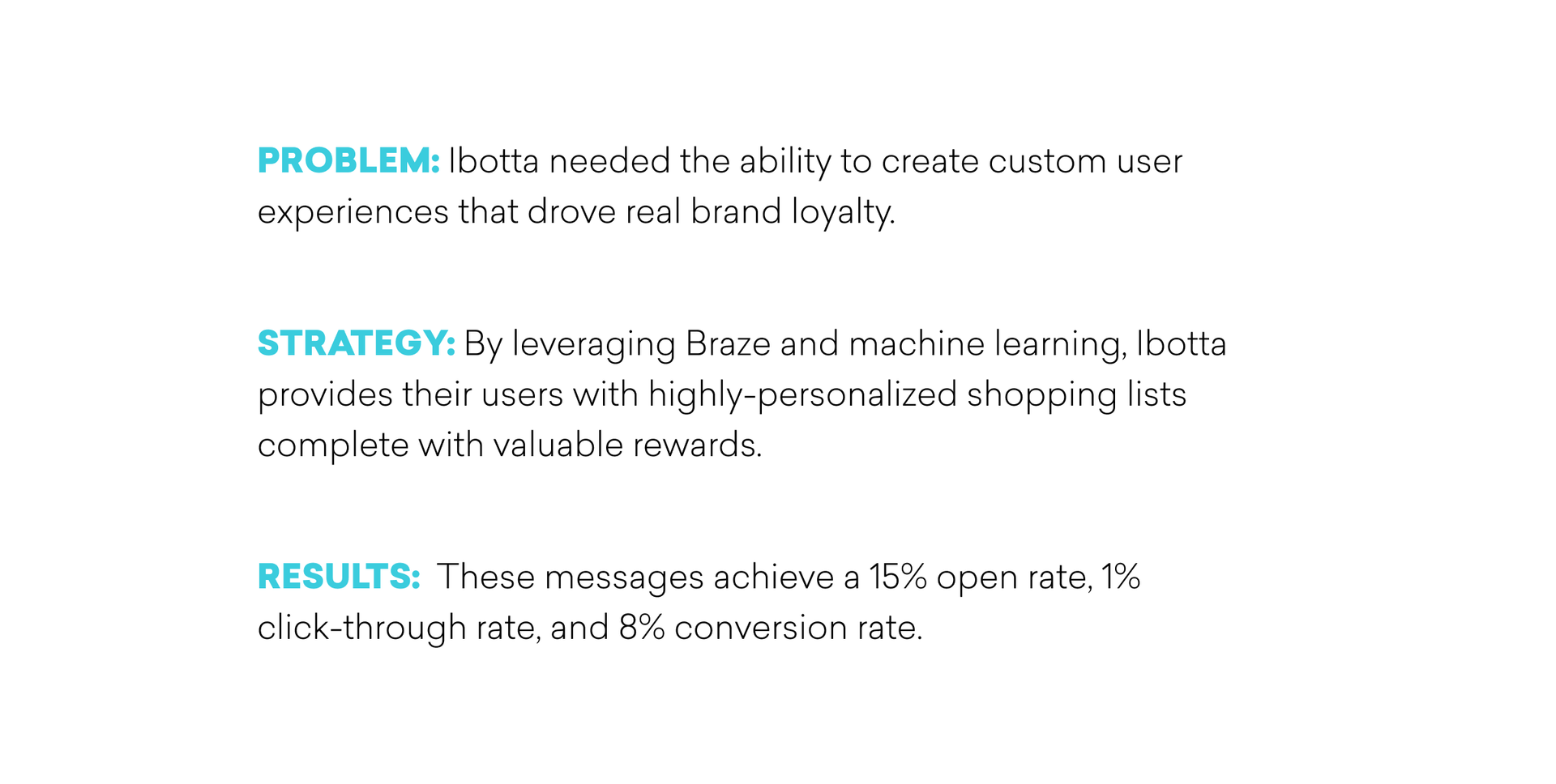 Not only does Ibotta save its customers money, but it creates memorable experiences that deliver real value every week. This kind of personalization transforms the relationship between a brand and its customers, driving more revenue, engagement, and long-term loyalty.