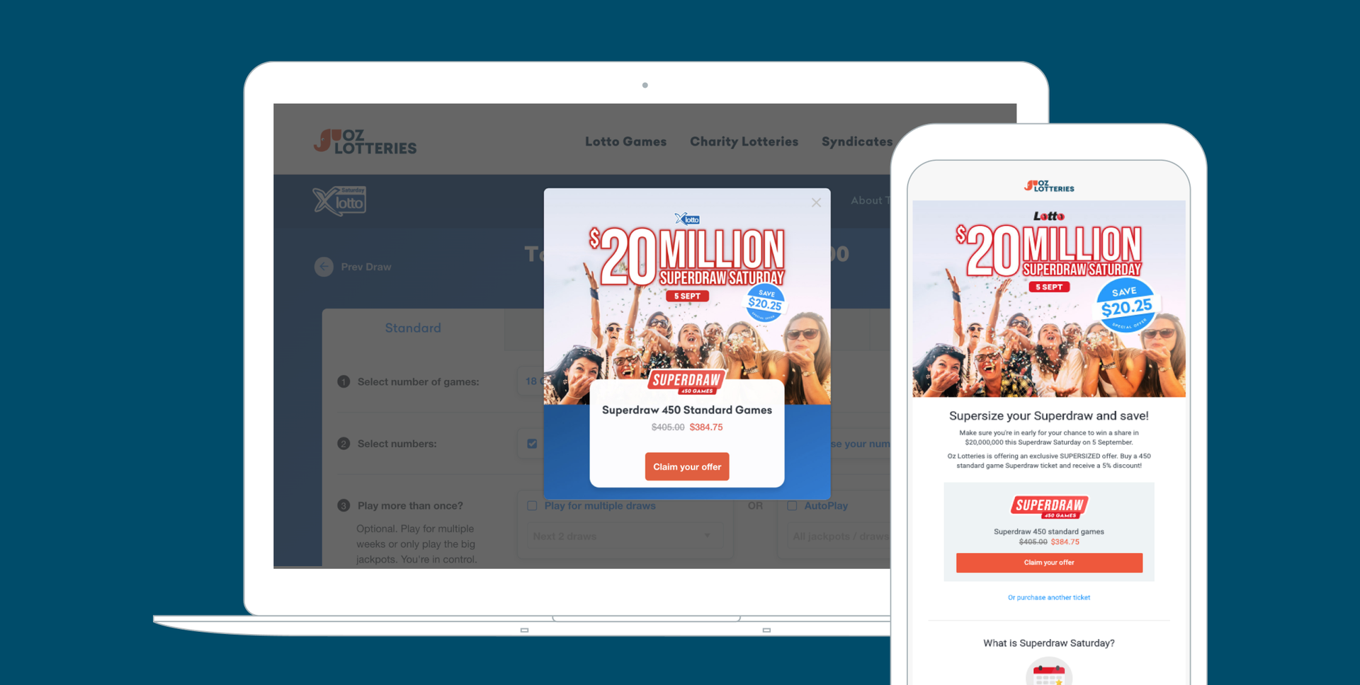 One of the games that Oz Lotteries offers is Superdraw, a larger and more exciting version of the weekly Saturday Lotto game with a $20 million prize to share in. Although the game was popular, Oz Lotteries wanted to increase sales of higher-priced tickets. The idea was to create a cross-channel campaign that targeted a cohort of customers more likely to purchase a higher ticket, determined by insights from Amplitude. They also wanted to automate the campaign for future Superdraws, which happen six or seven times a year.For the campaign, Jumbo sent a familiar offer—a 5% off discount— to targeted users via mobile push, IAM, email, and web Content Cards. Amplitude sent the cohort of customers directly to Braze, and the Oz Lotteries team were able to automate the campaign with Connected Content API calls to enter draw information.