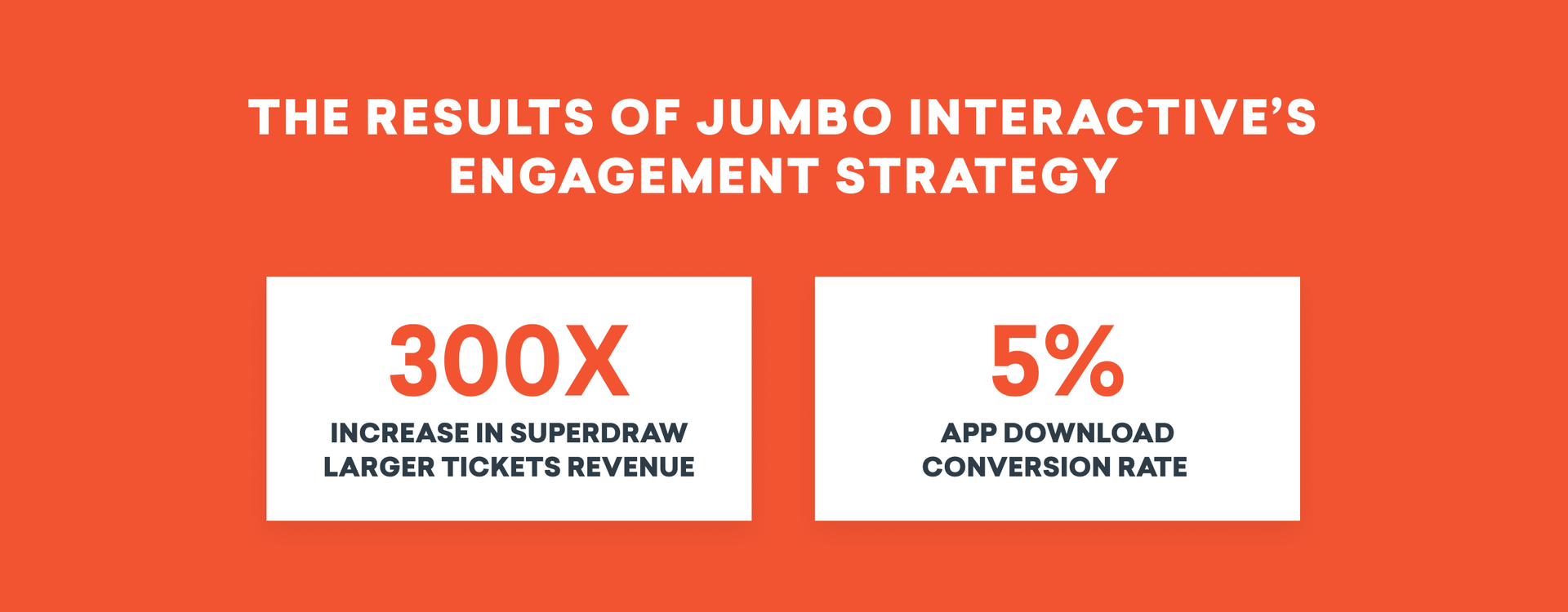 By leveraging Braze and Amplitude, Jumbo was able to reach high-value customers with a targeted cross-channel campaign that increased sales of larger tickets. They were also able to reach customers more likely to download the app with a Content Card to drive more mobile app installs. Overall, the Superdraw campaign saw a 300x lift in revenue of higher-priced tickets while the web Content Cards campaign drove a 5% app download conversion rate.