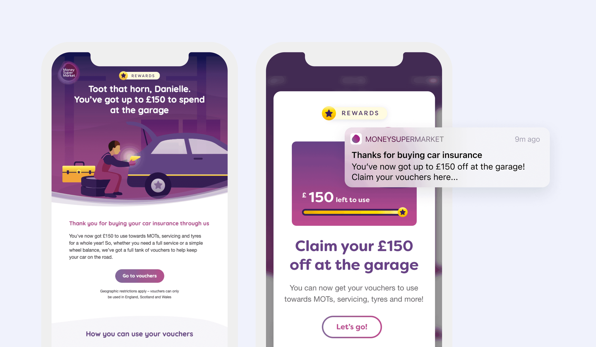 • Auto-confirmation emails sent to customers as soon as MoneySuperMarket received a sale notification from any provider, making it easier for customers to handle manual claims