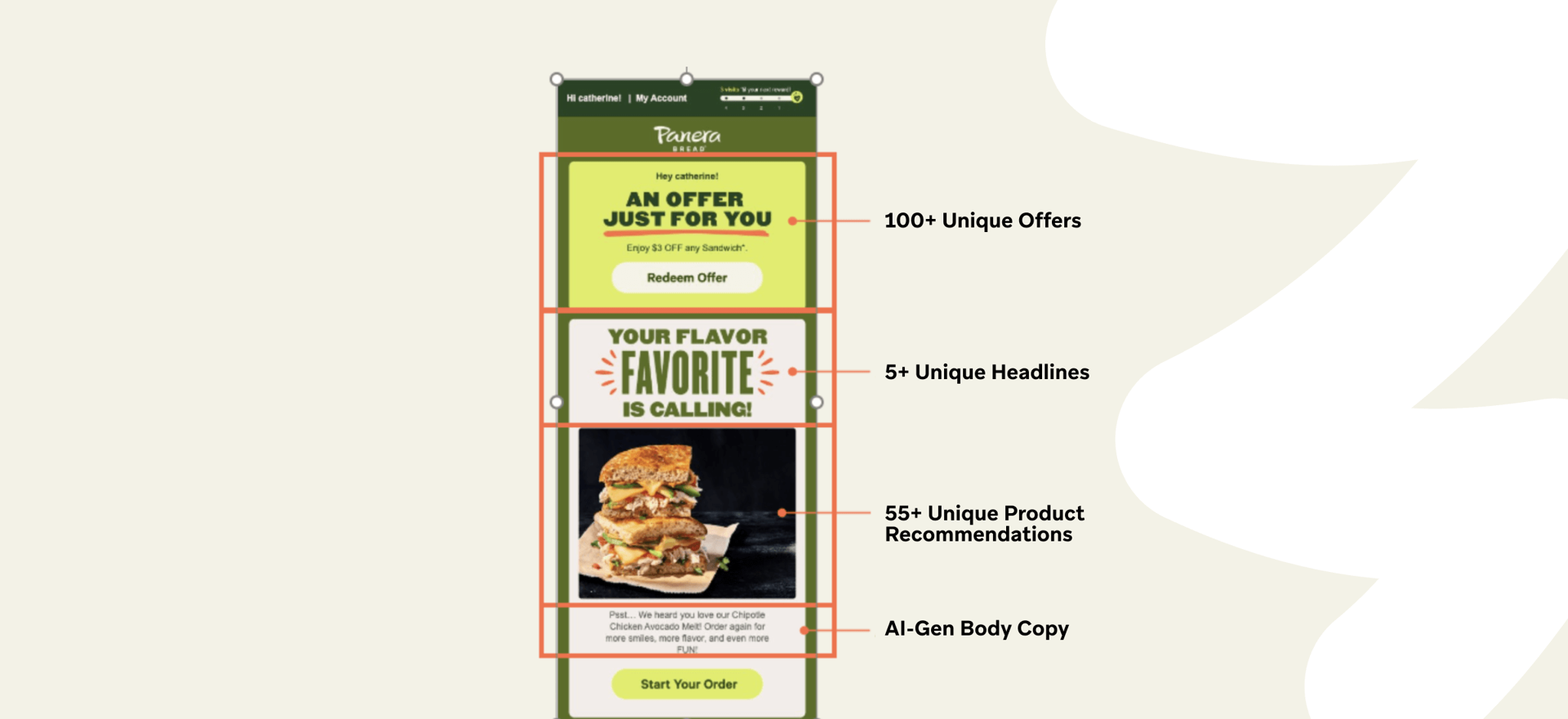 By integrating its AI-powered decision engine with Braze capabilities, Panera created a cross-channel, personalized campaign strategy to guide guests through their menu transformation.