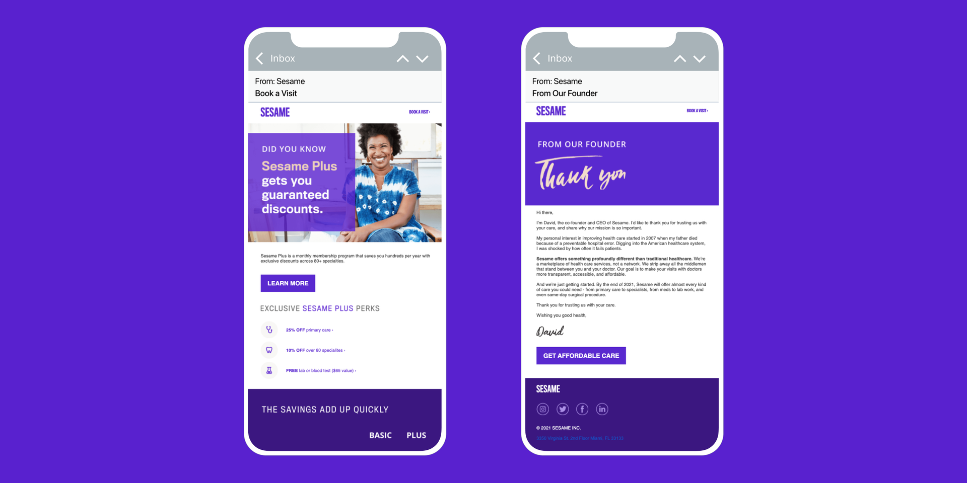 Like many eCommerce businesses, customer engagement is essential for Sesame because its product is its website, which serves as the gateway to the healthcare they provide. And much like those businesses, a vast majority of users on Sesame’s website do not transact during their first visit. To help nurture those visitors into customers, Sesame looked to create a strategy where better user data could be collected from visitors’ behaviors (“events”), relationships could be nurtured through personalized, cross-channel communication and additional revenue could be created around the brand. That’s when they switched to Braze.
