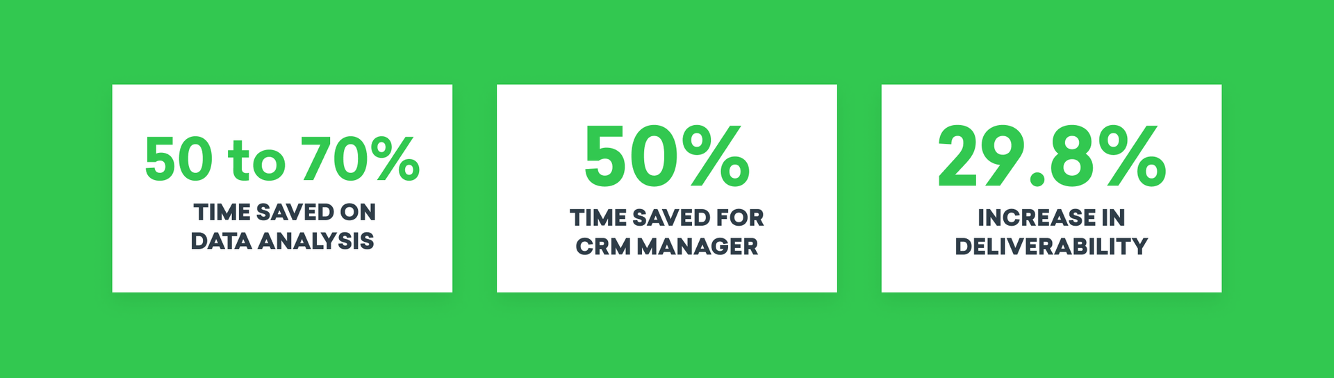 The ability to seamlessly visualize and react to customer data and do a majority of their analysis without ever leaving Braze saves between 50 and 70% of time previously spent by their data team doing analysis. And working on campaign building with all that data saves nearly 50% of the time previously spent by their CRM team, giving them better insights into customer behavior and the ability to focus on strategy and building complex user experiences that create value.