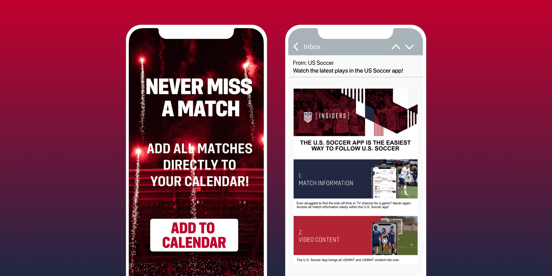 Prior to Braze, U.S. Soccer worked with different point solutions for email, push and in-app messaging, but wanted a technology that would consolidate all their communications into a single platform as well as unlock valuable insights into their customers’ behaviors across each of those touchpoints. In addition, U.S. Soccer was looking to create more effective email messages with less effort, add new channels to their messaging mix, streamline their ticketing and merchandising efforts to increase market share and revenue, and boost premium memberships on their Insiders loyalty program to drive fans to exclusive offers, experiences, content, ticket deals, and more.
