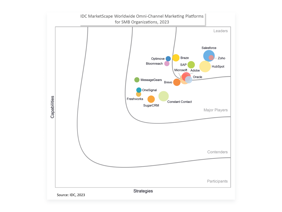 The IDC MarketScape assessment is a comprehensive study that evaluates the effectiveness of various customer engagement platforms based on omni-channel adoption, general marketing functions, journey orchestration, personalization, and artificial intelligence/machine learning capabilities. For the Enterprise assessment, they focused on the needs and challenges of large enterprises (1,000+ employees) while the SMB assessment addressed the needs and challenges of organizations with fewer than 1,000 employees. IDC MarketScape follows a rigorous process of assessment that includes research such as structured discussions, surveys, and interviews with market leaders, participants, and end users. The study is intended to assist marketers when selecting the most effective platform for their needs.