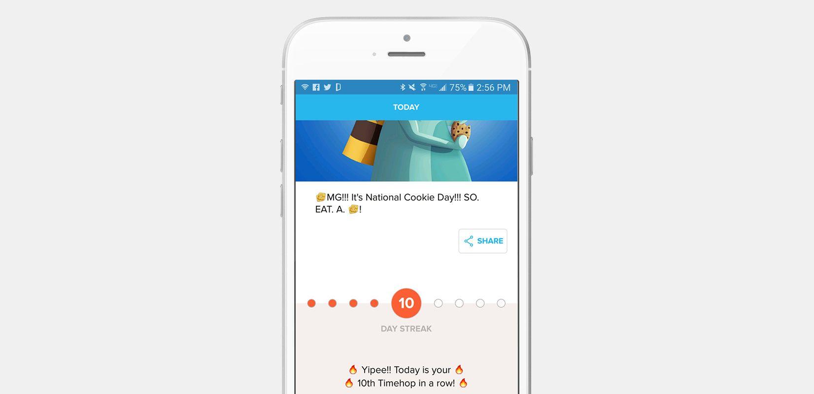 Though simple, this personalized in-app message, “Yippee!! Today is your 10th Timehop in a row!” for the social “time travel” app (you visit your personal history in memories) is spot on in its celebration of the ritual: Taking a walk down memory lane each and every day. According to Appboy research, customers who have a reason to engage consistently are more likely to stick around for the long haul.
