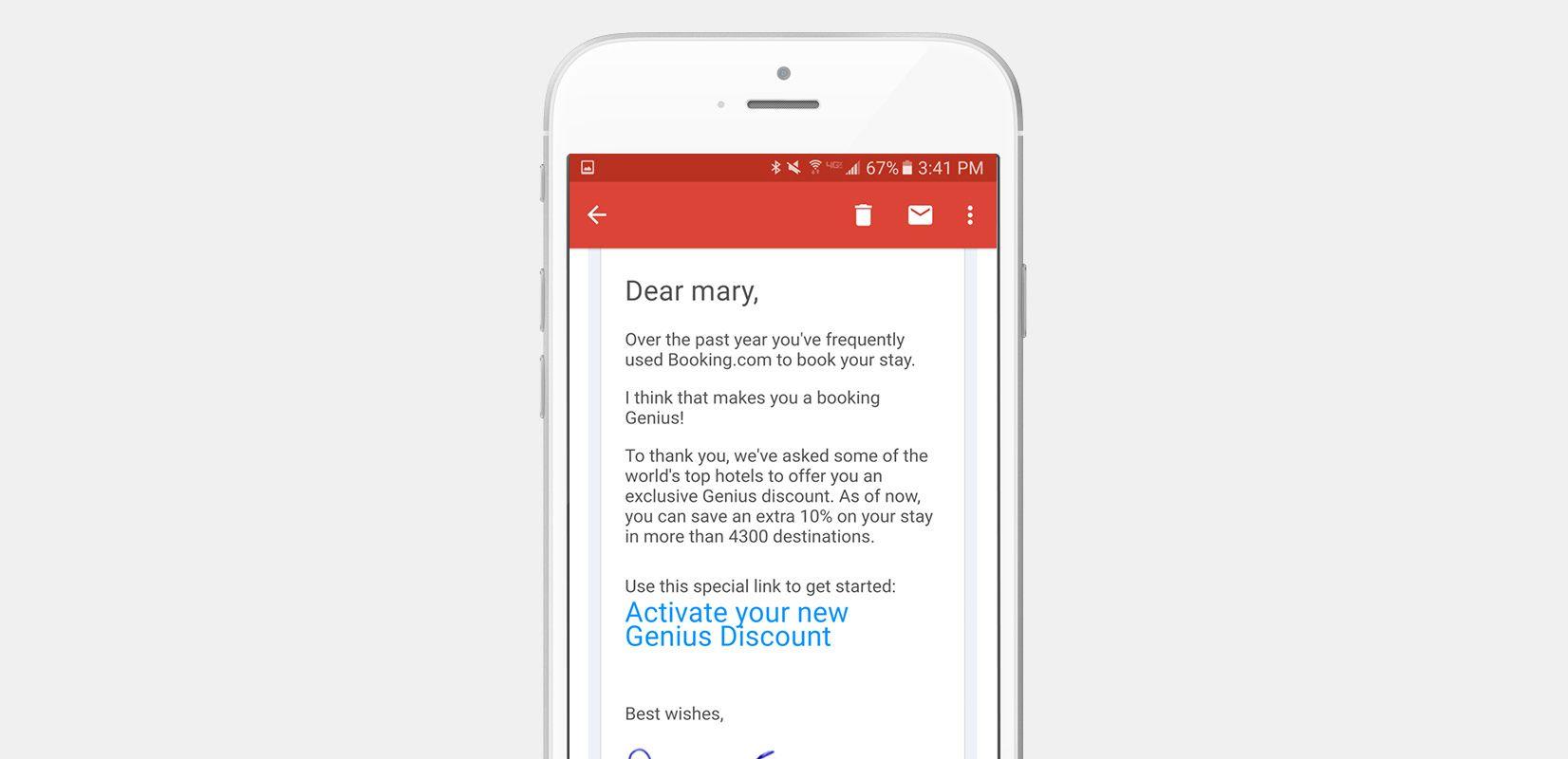 As a commerce-driven travel app, Booking.com can and does use a little financial incentive with its development campaign aimed at the most active users to get them to take the next step within the app: Unlock a new membership level that comes with an exclusive offer of a 10% discount.