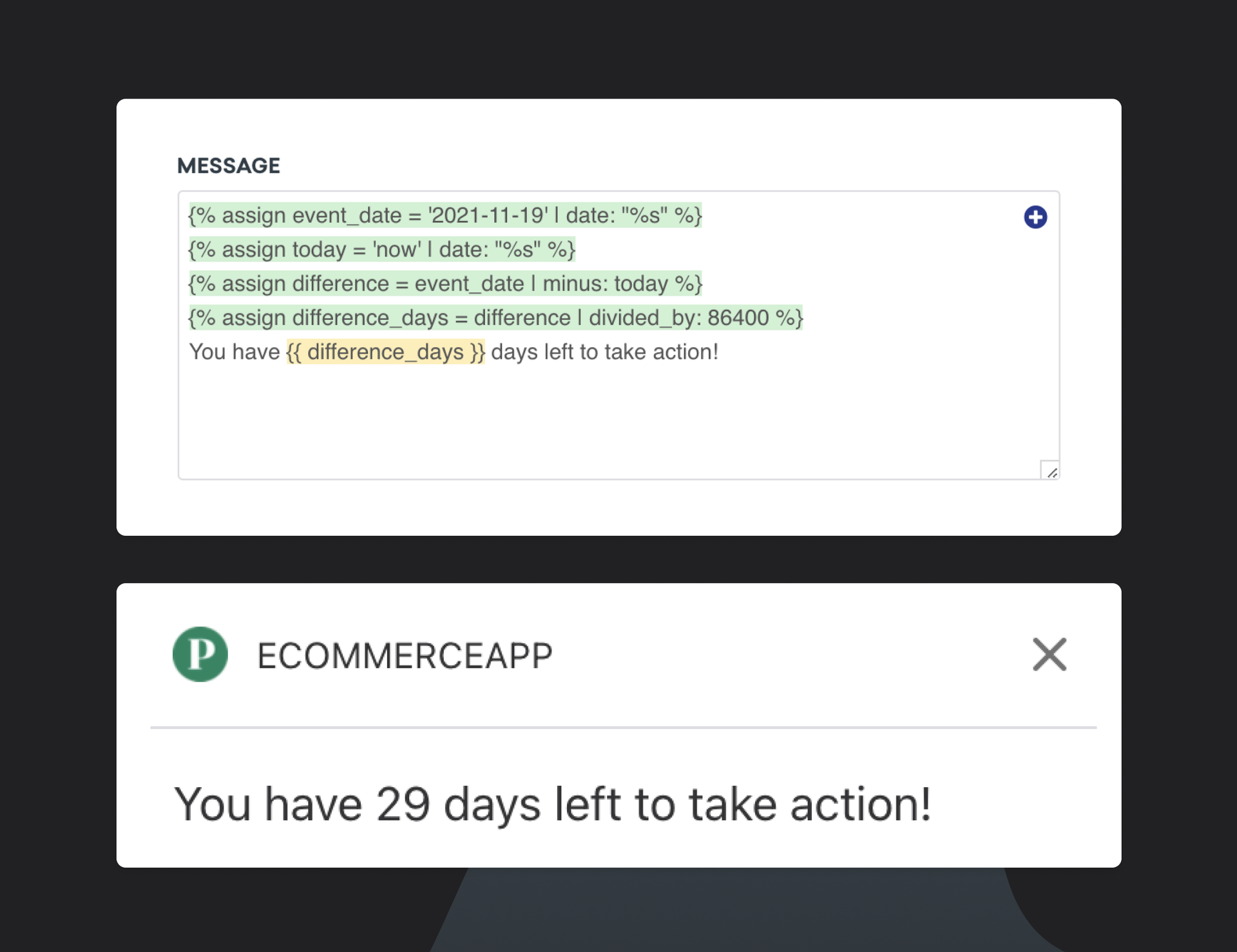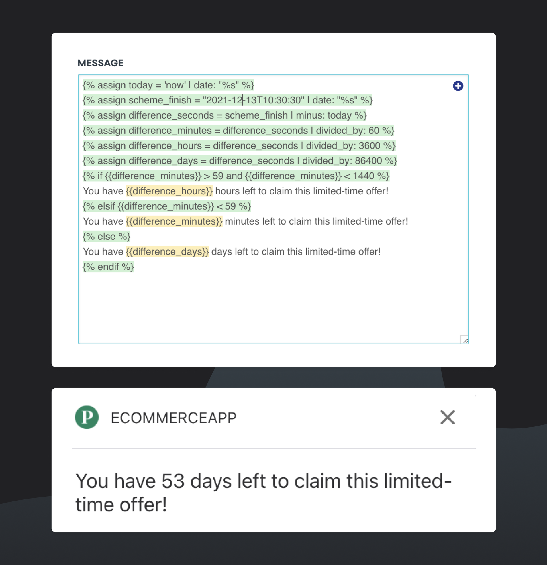 Want to generate interest in and build excitement around an upcoming event, sale, or announcement? You can use Liquid to include messaging that counts down to the big day.