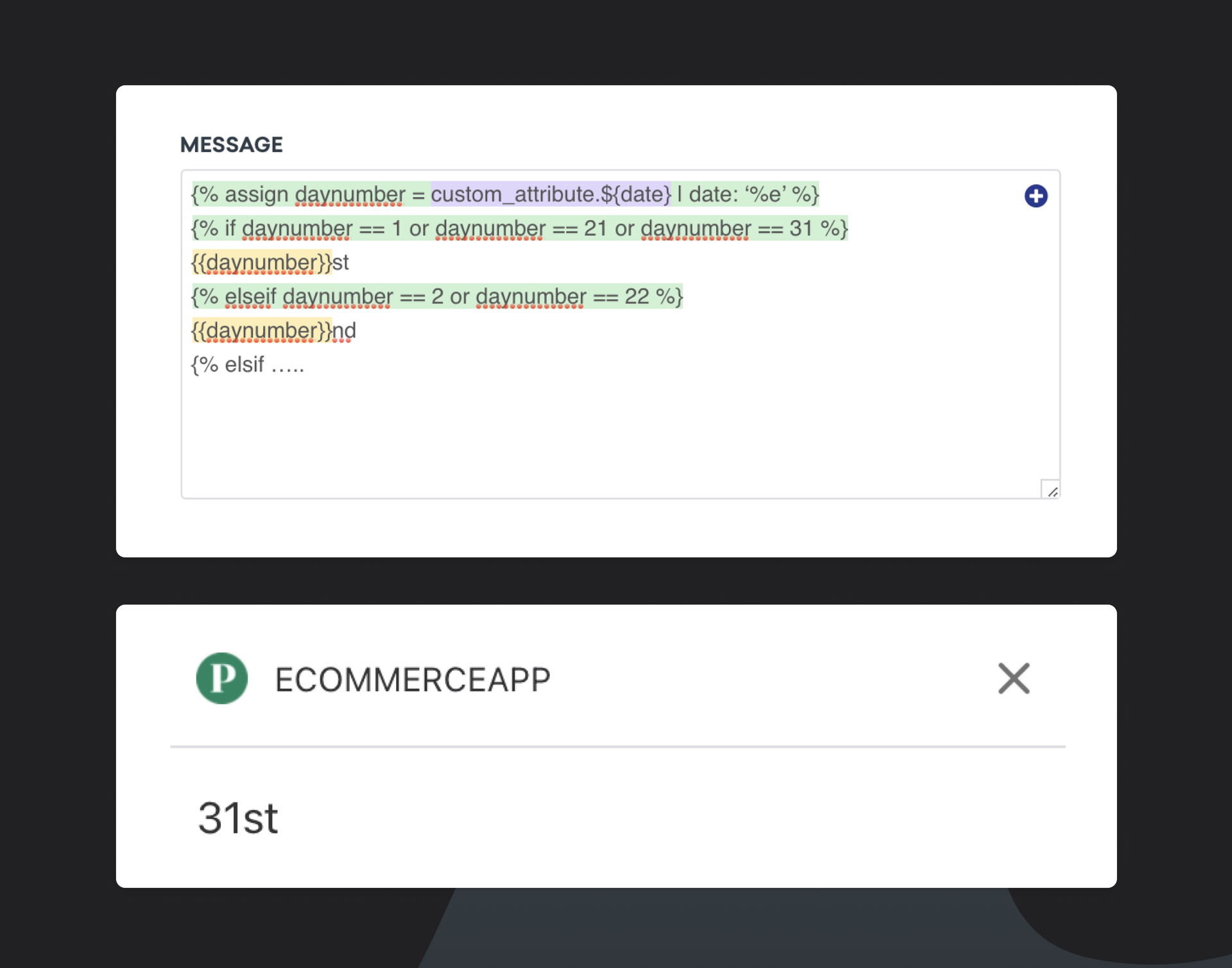 You can use the variable 'now,' to personalize messages based on days of the week, supporting personalized touches that can enhance medication or account balance reminders, purchase notifications, and much more.