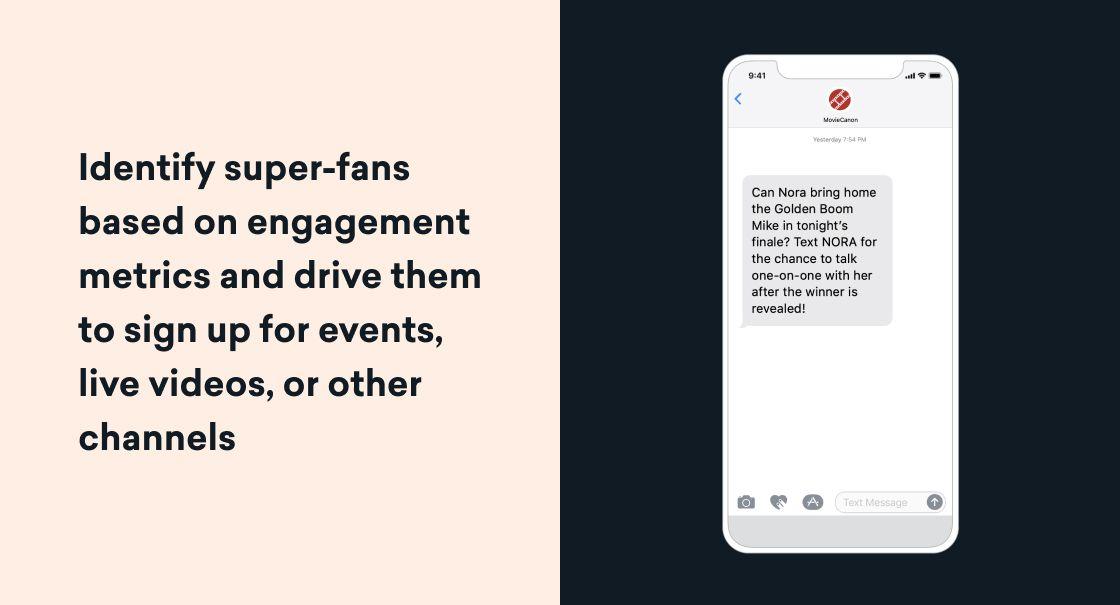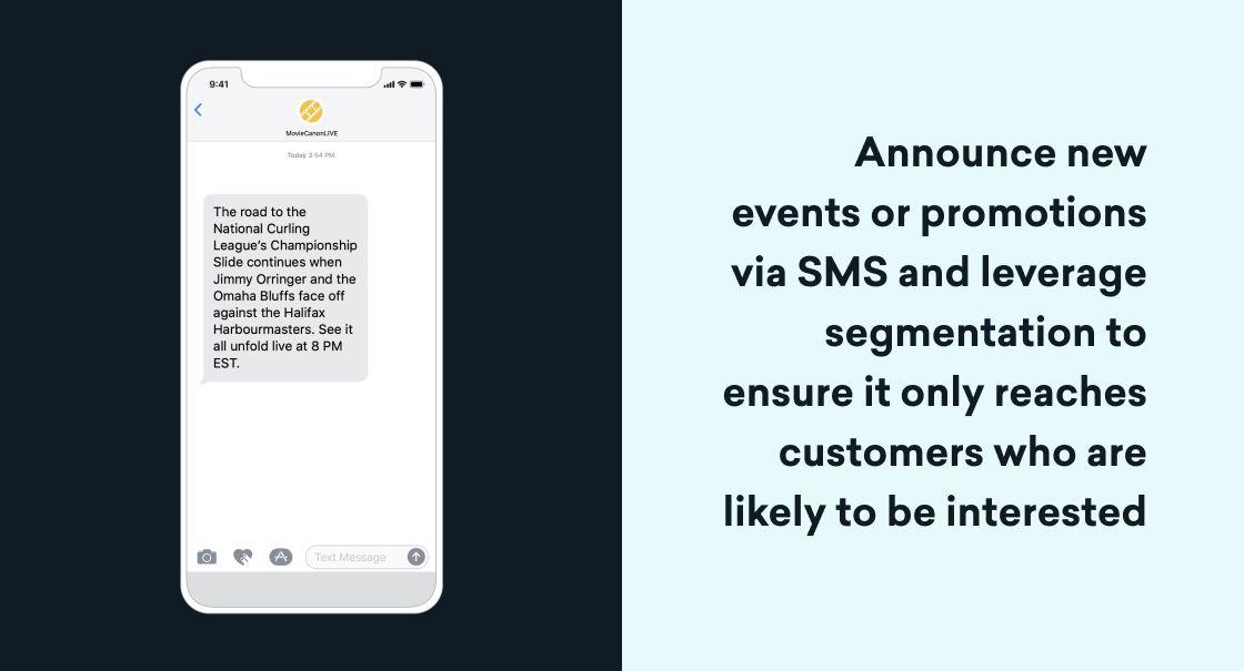The first step is leveraging SMS to bring your campaign to customers likely to engage with this highly impactful channel. After all, announcements for new products, services, or content can be a great opportunity to connect with your customers and foster regular activity, especially among less-engaged or lapsing users.
