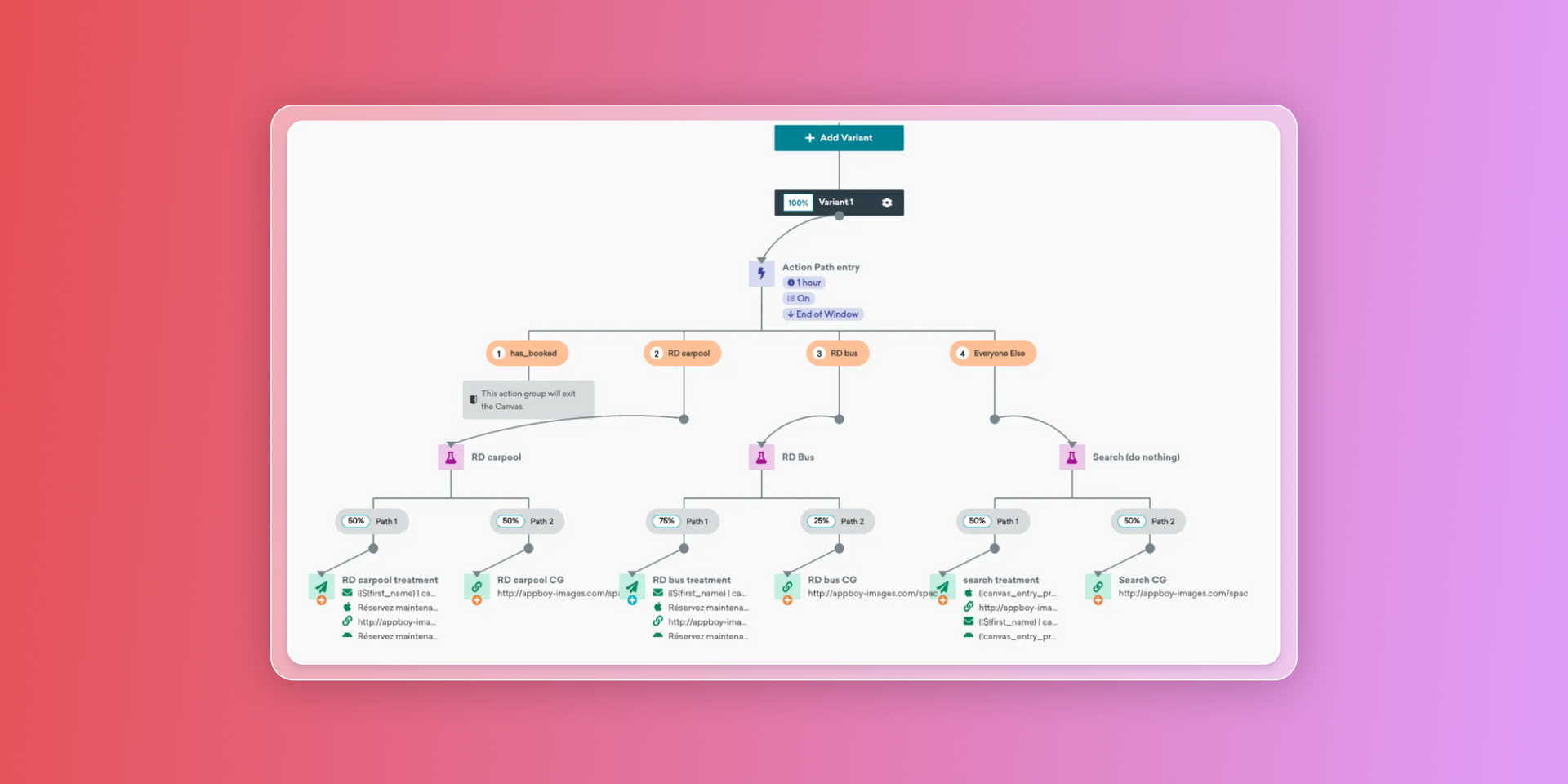 Use case: BlaBlaCar, a carpooling platform, implemented Action Paths in Braze Canvas to automate cross-channel journeys, sending personalized messages to people at optimal times, based on different actions they had taken, like booking a trip or searching for a carpool. This strategy led to a 30% increase in bookings and a 48% uplift in click rates.