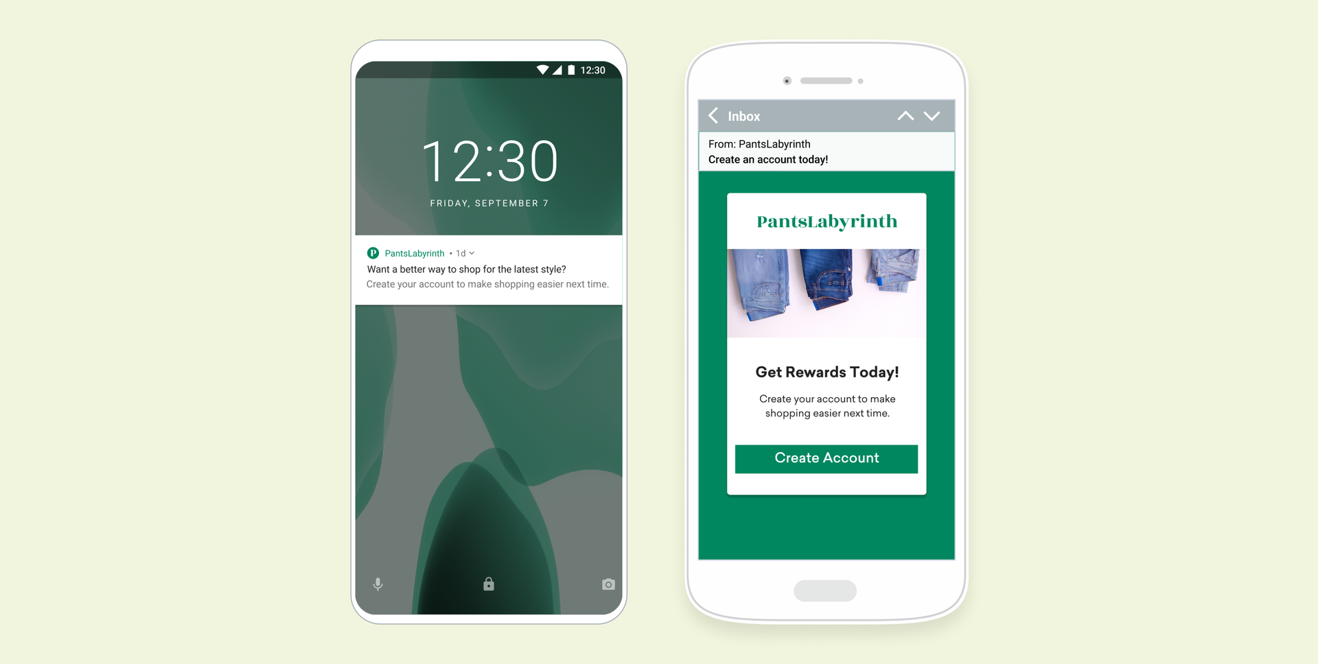 The campaign: Encourage anonymous users to complete the process of creating an account using in-product messages, such as in-app messages (IAMs), Content Cards, and in-browser messages (IBMs). Highlight the benefits of signing up for an account.