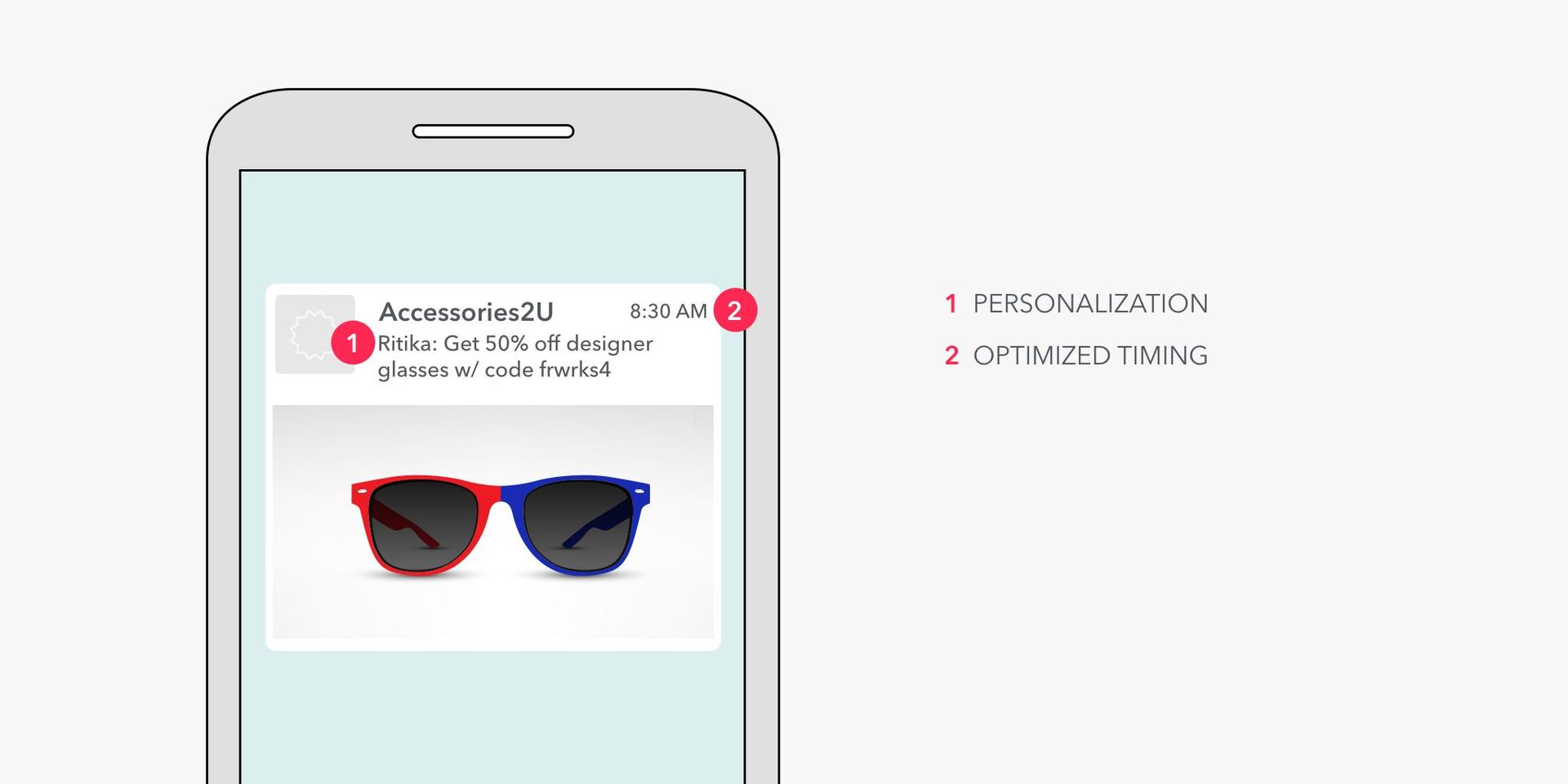 Want your push notifications, in-app messages, and emails to stand out from the others that your users are likely to be seeing? Show your audience that you care about their needs by sending specific, relevant, and tailored information. If you’re a marketer at an ecommerce company, you could show your user a product that he or she has been browsing.