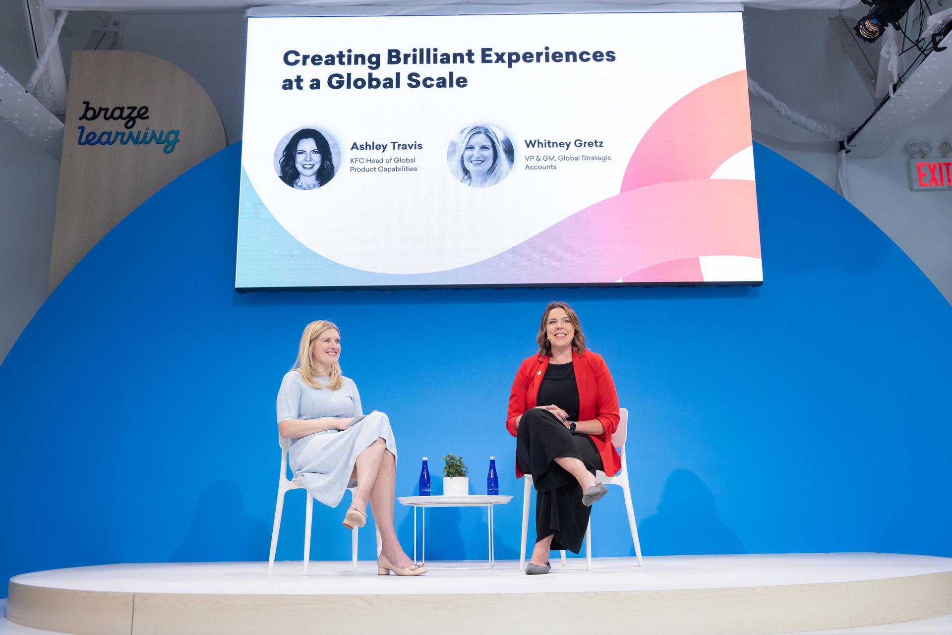 Whitney Gretz, VP and GM, Global Strategic Accounts at Braze (left) and Ashley Travis, KFC Head of Global Product Capabilities at Yum! Brands (right) discuss collaboration and effective teamwork
