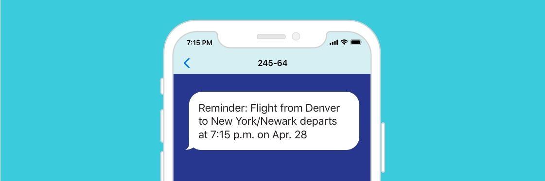 A few months ago, I booked a flight back to New York from Denver—and then received an SMS from the airline at 7:15 p.m. on April 28 reminding me that my flight was departing...at 7:15 p.m. on April 28. I’m (unfortunately) used to flight reminders coming late, but this one was particularly annoying. At that point, if I’m not already on the plane, odds are that I’m probably not getting on, so you might as well hold off on sending a text.