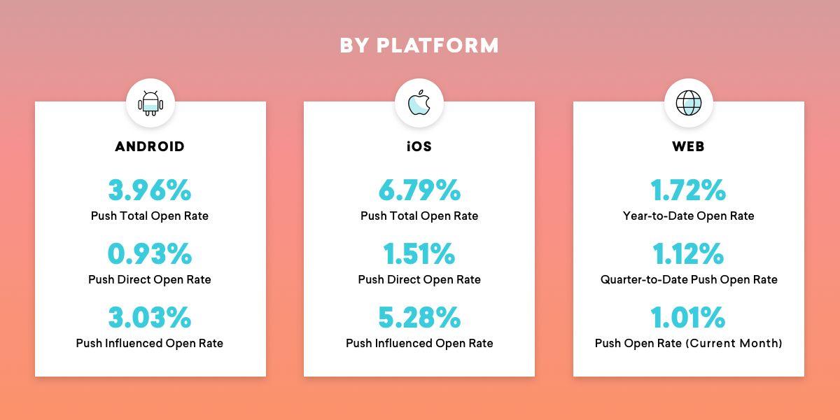 We’re big fans of using data and technology to bolster your team’s creative and strategic thinking. Data like this is big for telling a full story and for understanding where your messaging is succeeding or falling flat. For example, we can look at push open rates all day—after all, they do tell us how many of your push notifications you sent were opened and can be a strong indicator of whether or not your messages resonated with people. You don’t really get the full story, though, unless you’re looking at direct and influenced push.