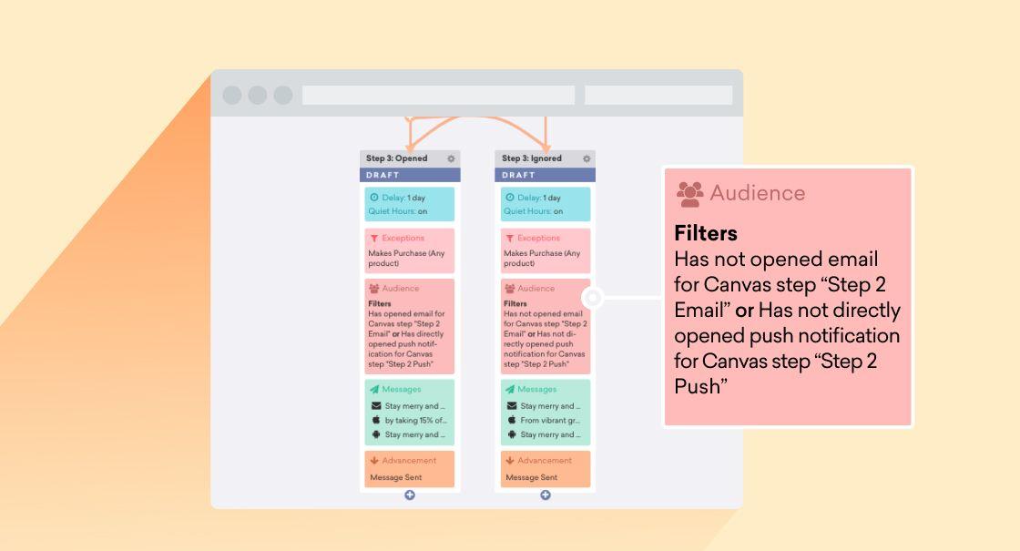 - And thanks to easy-to-understand filters available at both the Canvas entry and Canvas Step level, it’s a simple way for brands to build a more dynamic, relevant, channel-agnostic customer journey.