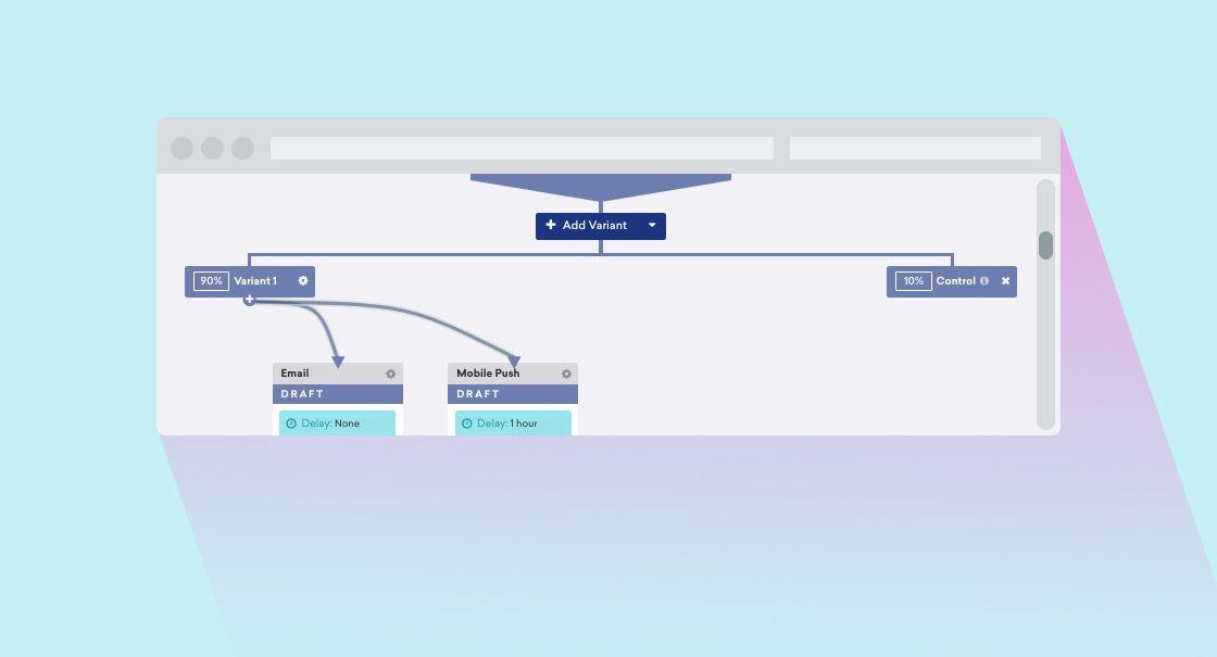- Test out your theories around ideal copy, cadence, frequency, messaging channel combinations, and more with a thoughtful multivariate test.