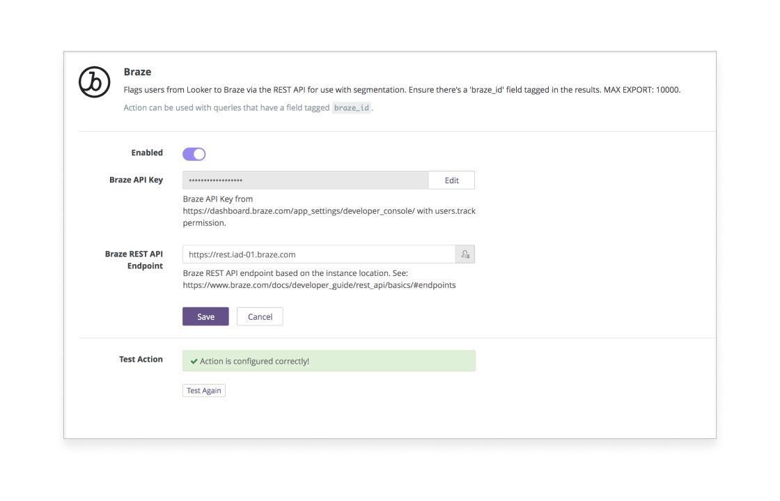Getting up and running with Braze’s Looker Action Hub support is straightforward and only requires a couple of steps.