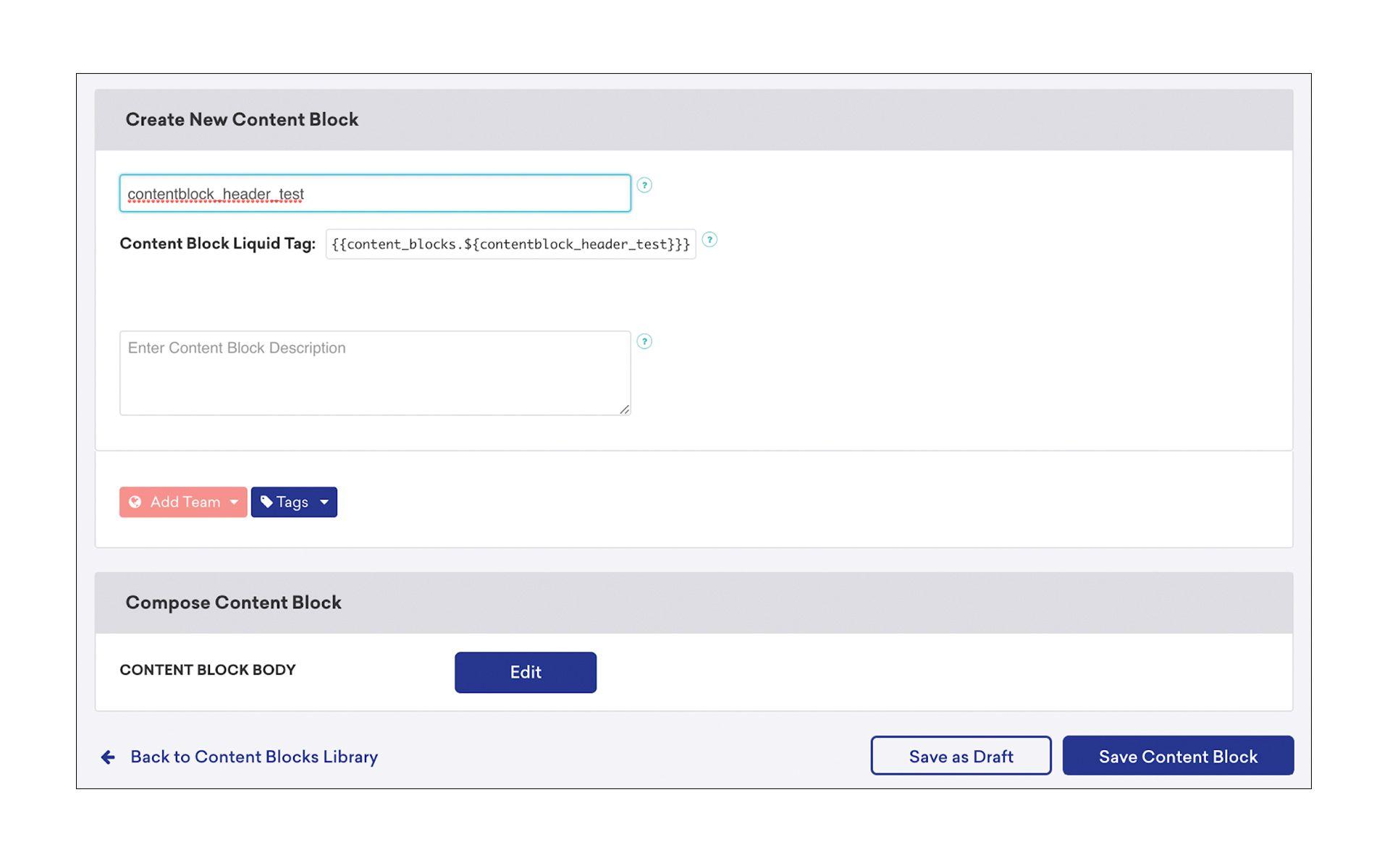Content Blocks offers marketing, growth, and engagement teams a centralized location in which to store content, so instead of reinventing the wheel, you can seamlessly reuse content from your Content Blocks across all message types (think email, push notifications, in-app messages, and more) supported by Braze. Content Blocks also support Liquid templating, so you can easily insert personalization, conditional statements, or even Connected Content, supporting more relevant, valuable, content experiences for your customers. What’s more, when you update a Content Block, all of the messages that Content Block is referenced in will dynamically update as well.