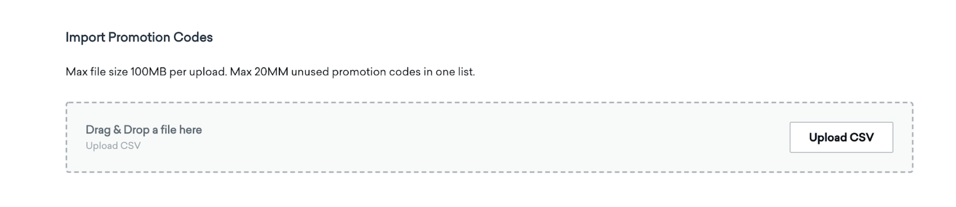 The Braze Promotion Codes feature is built to easily ingest a CSV of up to 20 million unique codes when creating a new Promotion Code List. To be clear, while each list can include 20 million active codes, there is no limit on the total number of Promotion Codes Lists your organization can have with Braze! So you can have different lists for different holidays, lifecycle stages, loyalty tiers, etc.