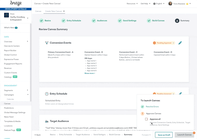 To help brands meet this need, Braze has designed new features that encourage structured collaboration by giving teams the ability to manage permissions and safeguard campaign quality before messaging flows are launched.