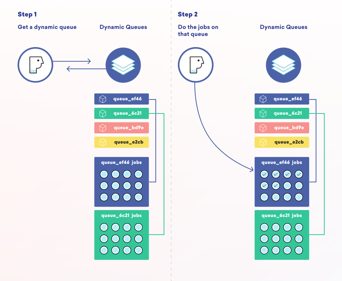 In a multi-step pipeline, job queues can pose a bit of a challenge because of what is called “queue starvation.” Queues are inherently first-in, first-out. That means that if we have 100 jobs for Customer A ahead of one job for Customer B on the same queue, nothing will be processed for Customer B until all 100 jobs are processed for Customer A. To resolve this problem, we built our own dynamic queue system that creates short-lived job queues for each part of the message-sending pipeline. The worker servers then do weighted selection on dynamic queues specific to the database to which they are assigned.