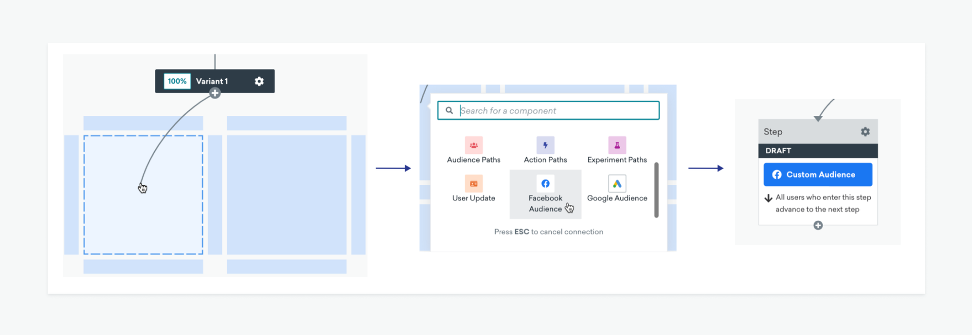 However, before the team could build out components that supported branching and other advanced use cases, they needed to make some significant changes. “Because the existing Canvas user experience was built with full steps in mind,” said Sean Laude, Staff Software Engineer, “it ended up being significantly easier to rebuild the entire Canvas frontend using React than just trying to plop audience paths on top of what was already there. And as an added bonus, adopting React made it possible for us to develop new Canvas features faster and allowed us to more easily deliver a consistent user experience.”