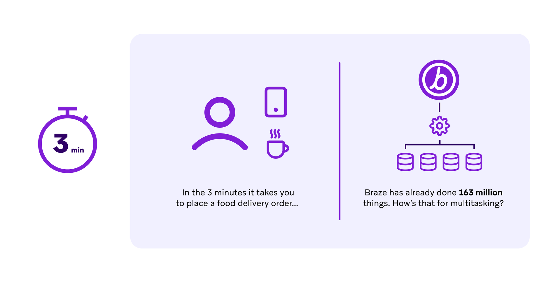 Braze handles this level of volume with ease—no bottlenecks, no delays, just smooth, uninterrupted service. It’s what happens when your system is built for real-time speed at scale, not just blast sends to big email lists.