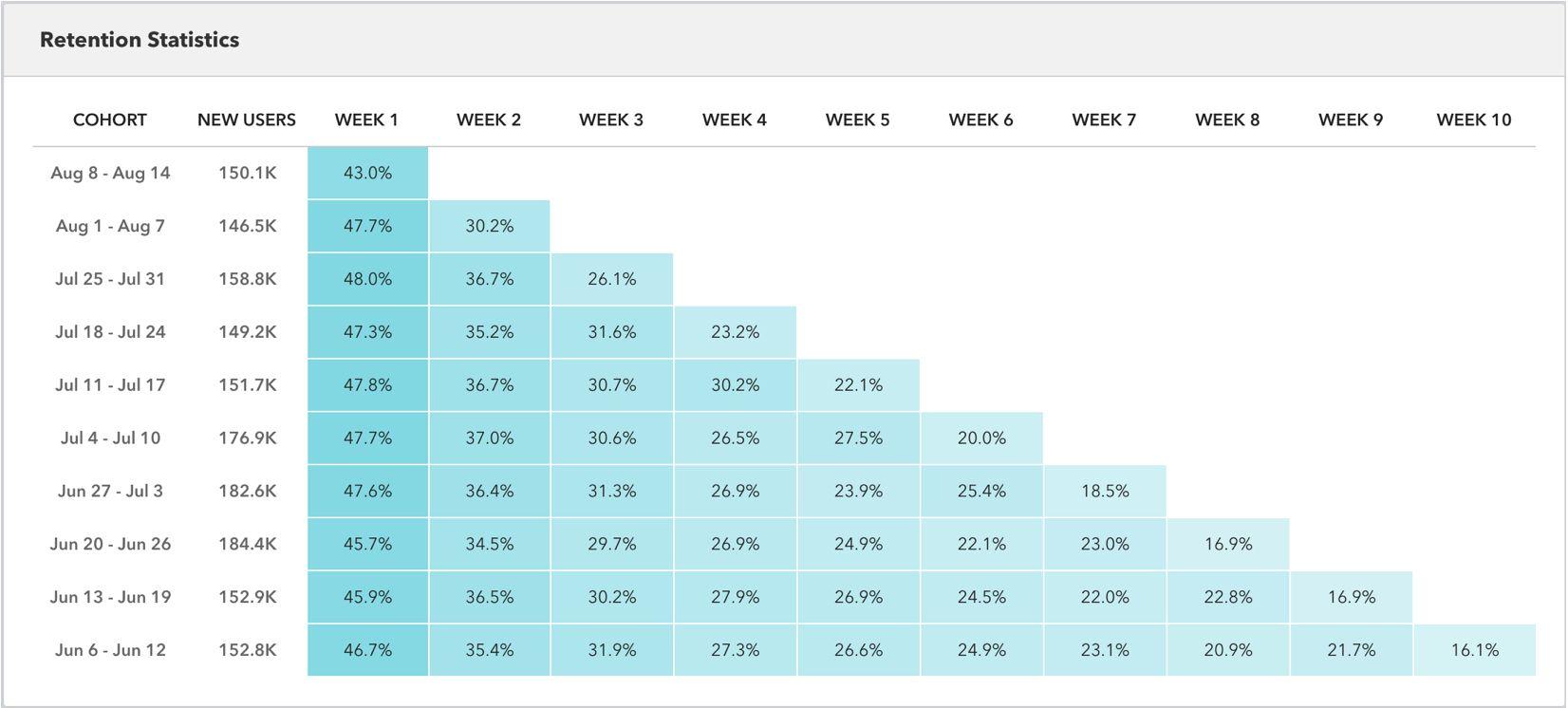 Sometimes you want just one simple answer. Rather than combing over how many users are coming back today vs. tomorrow, or in two weeks vs. in three weeks, you just want to know how many customers you’ve successfully built a long-term relationship with. Rolling retention gives you that one number. Of course, is has its blind spots, too, which we’ll discuss.