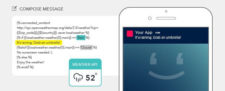 Using Appboy’s Connected Content (dynamic content) to deliver different message variants based on weather conditions