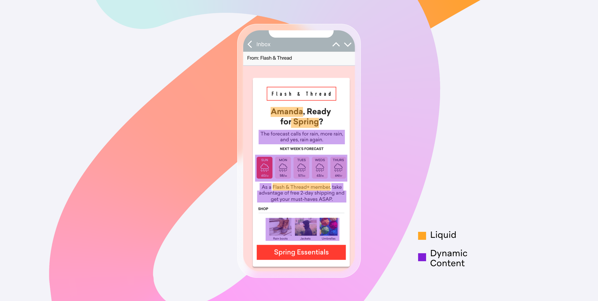 While each of these individual use cases can add value and relevance for message recipients, you don’t have to stop there. You can use these different types of personalization in concert—that is, embedding various sorts of personalization throughout a message or outreach flow to create a deeply tailored experience. After all, there’s no reason you can’t target a segment to a specific audience, add in details from the recipient’s profile with Liquid, and top it off with in-the-moment touches via dynamic content personalization!