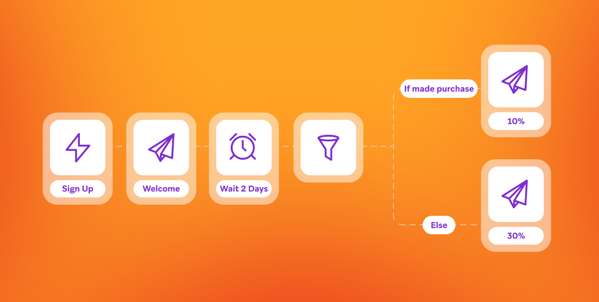 Rather than sending the same discount to everyone, use branching logic to tailor your message based on past behavior or likelihood to convert. You can also run A/B tests to optimize subject lines, CTAs, and timing across different segments.
