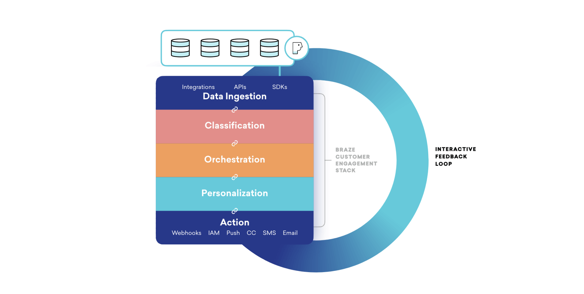 For a customer engagement platform to be worth the investment, evaluating if the solution is built for up-to-the-minute data processing is critical. We like to think of it as an interactive feedback loop. At Braze, when we mean real-time, here’s what we mean: