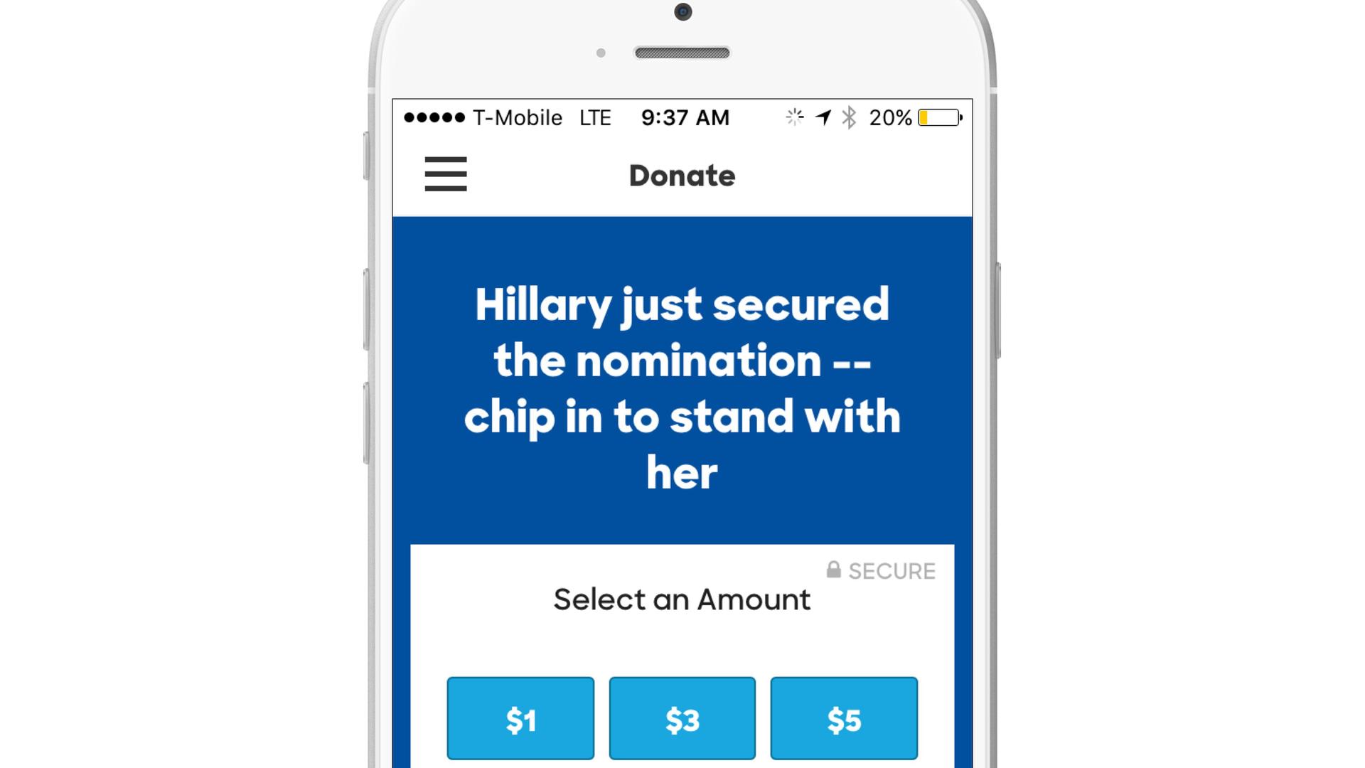 Hillary 2016’s in-app donation page