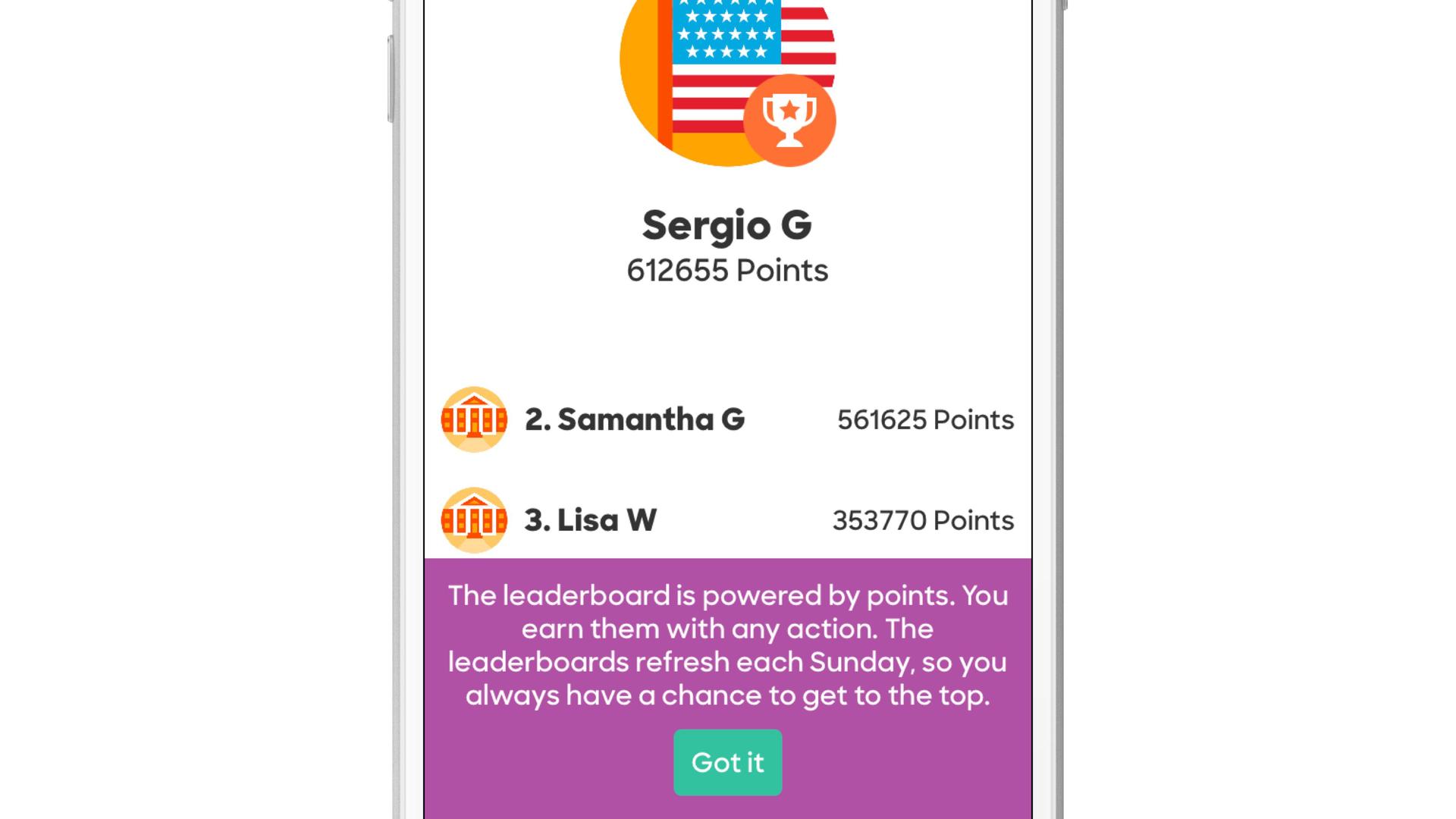 Gamification in the Hillary 2016 app