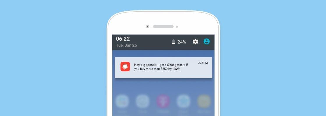 The holiday season revolves around shopping and what better way to drive up revenue at this key time of year than by upselling customers who have already made their purchase decision? To make it happen, consider offering a reward to users for making a larger purchase—for instance, giving out a $25 gift card for every $200 spent. Trigger a promotion campaign to send after a customer has completed a purchase that rewards them for that behavior.