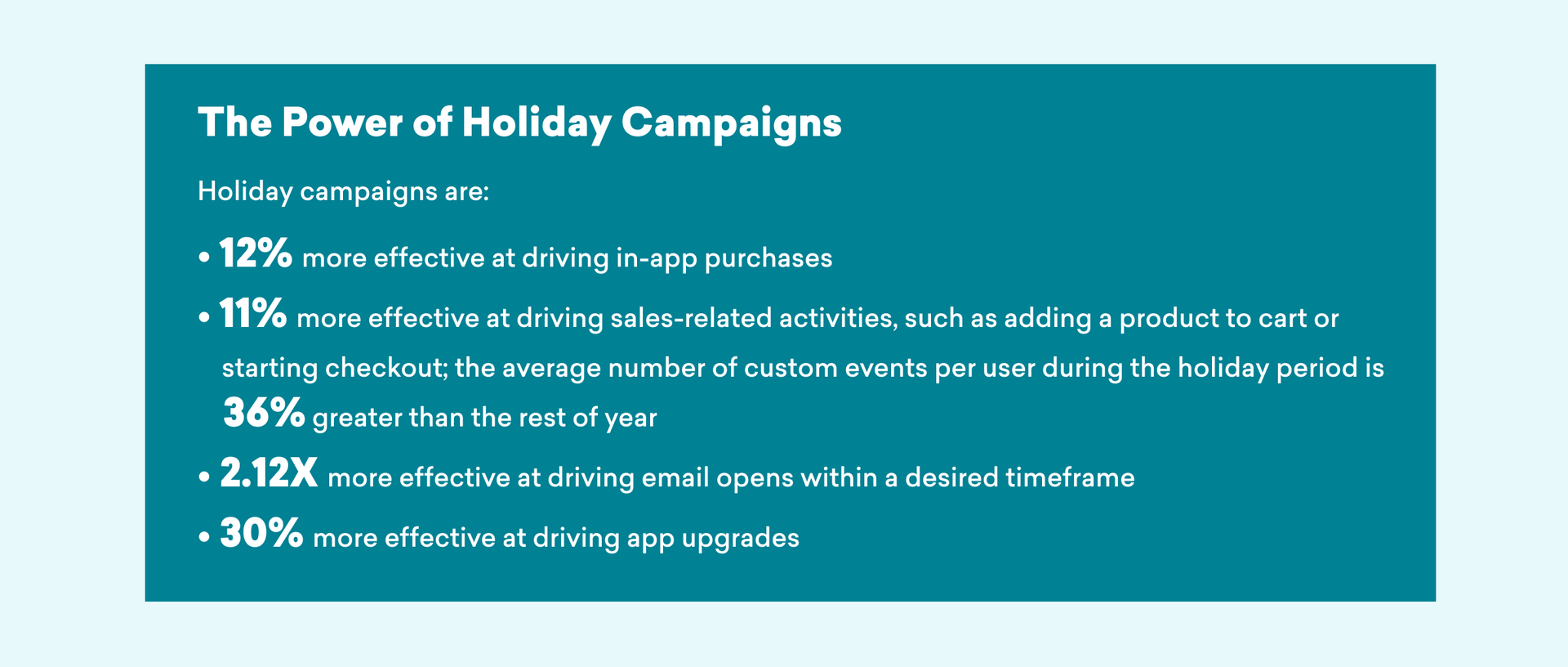 To understand those challenges and to get a better picture of how customer engagement plays out in connection with the winter holiday season, Braze pulled data on how users engaged with nearly 200 retail and eCommerce brands before, during, and after the holidays. We found that holiday campaigns are often more effective than campaigns sent during the rest of the year—but they are also more challenging.