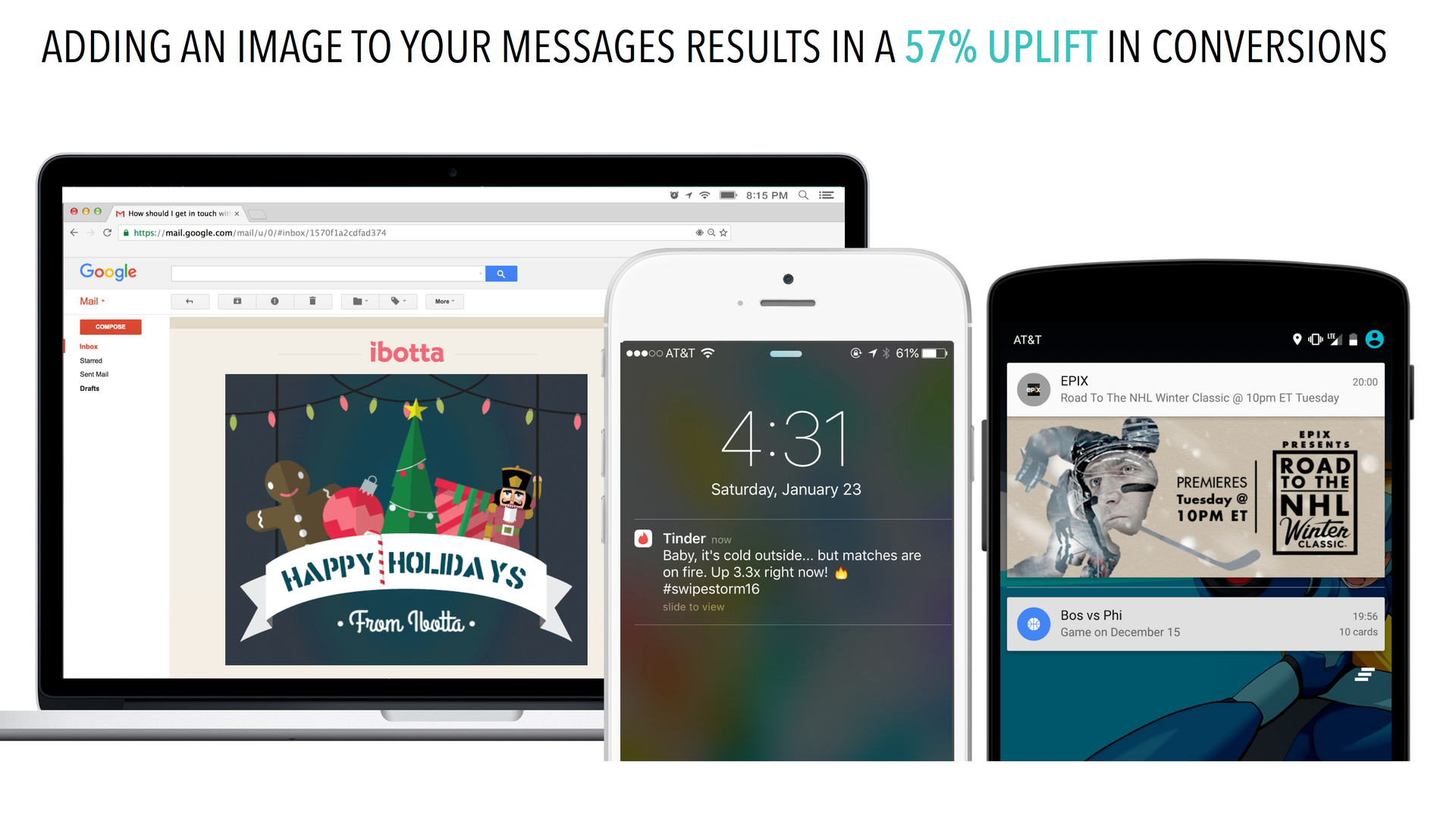 “People like to feel understood,” Aydlett said during the webinar. “That’s true all year long, but it’s especially true during the busy and demanding holiday season.” Personalization and other data-driven customization is an important part of that equation, but you should also think about how to use the messaging channels that mobile has made possible to engage and delight recipients on an emotional level. To get customers in the holiday frame of mind, consider making use of: