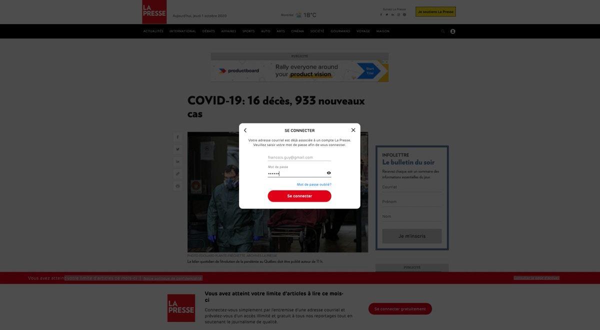 In real life, we saw Braze customer and French-language news source La Presse use custom in-browser messages (that is, web in-app messages) to create “reader walls”—article pages that allow full access to content while providing a persistent countdown-enabled reminder to create an account. That approach allowed the company to boost revenue, adding 139,000 subscribers in the first month. (Read the full case study here.)