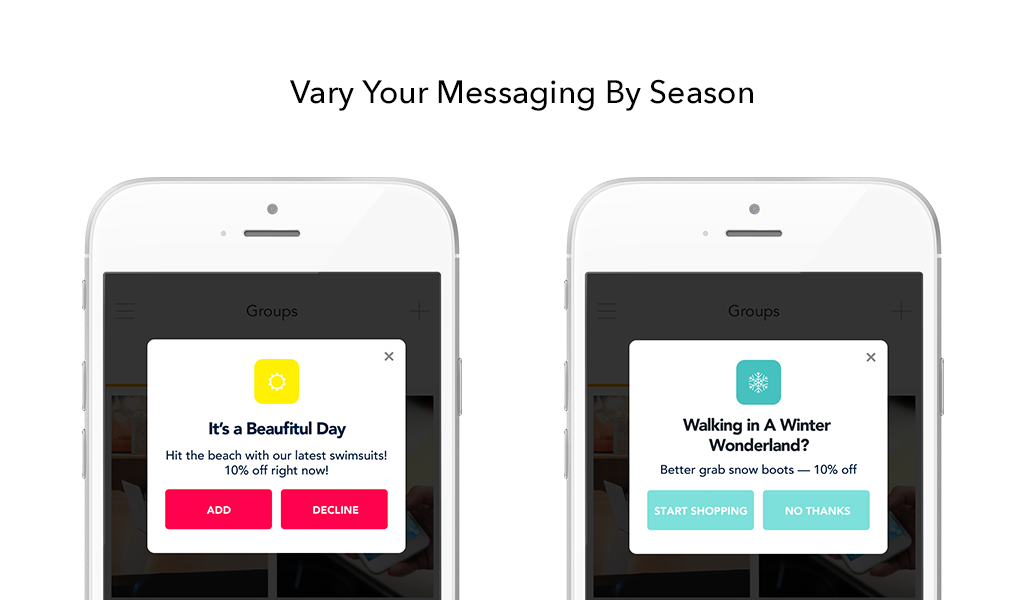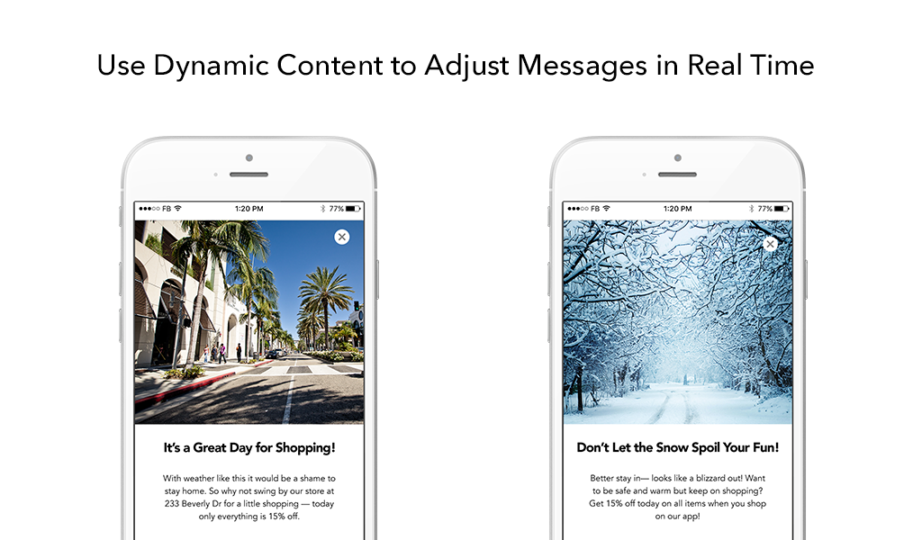 By personalizing the messages that you send to your customers, you can take advantage of what you know about your audience to treat them as individuals whose interests and preferences you value. That makes it easier to show your customers the value of your brand while also adjusting your pitch based on the way they’re interacting with your app. (Plus, personalizing messages boosts conversions by more than 27%!)
