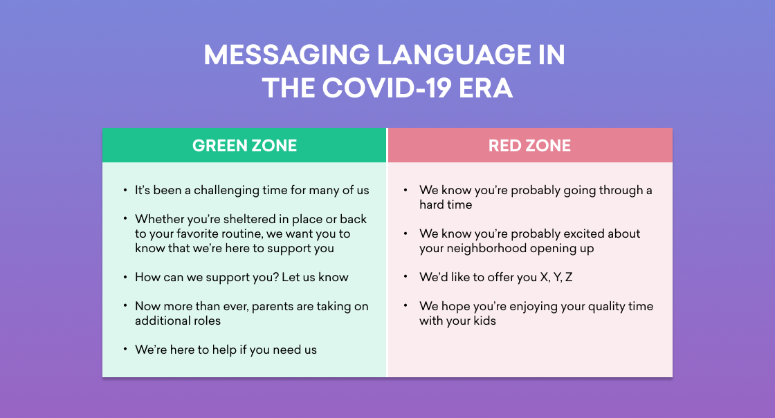 It’s important to keep this big picture front and center. Yes, your business needs to perform well in spite of the pandemic. But doing well, in the case of this once in a lifetime crisis, means getting through it. And getting through it means meeting your audiences where they are.