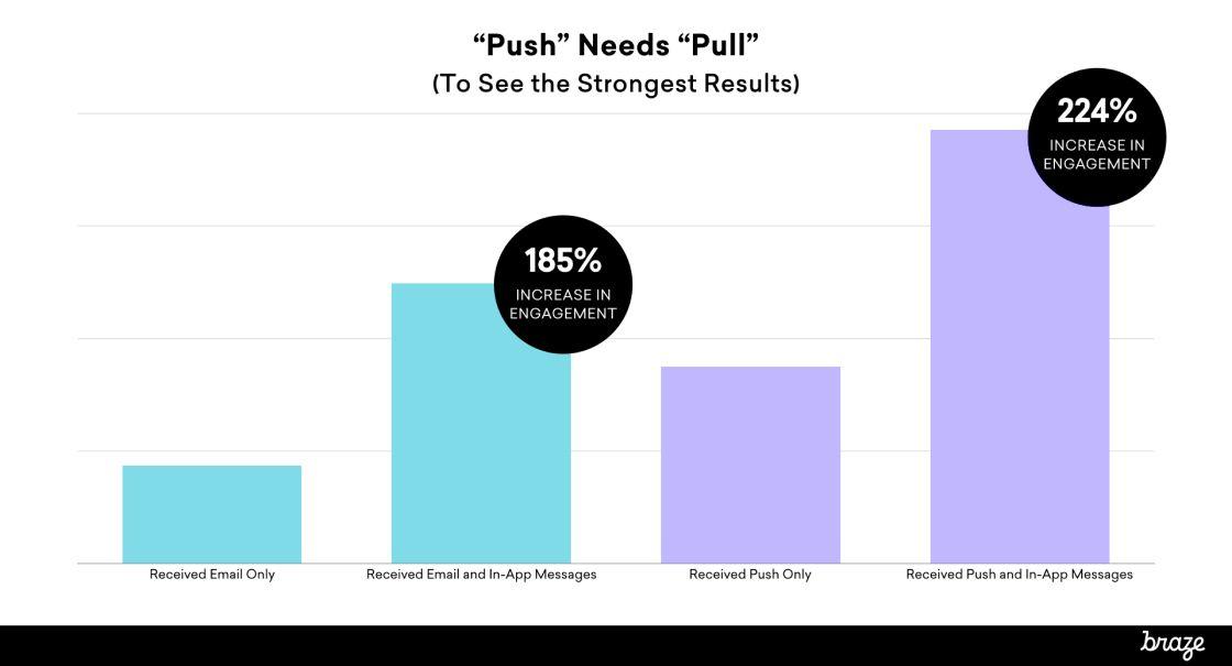 New research carried out by Braze has found that while “push” channels are powerful tools for juicing customer engagement, they can’t reach their full potential on their own. To get there, marketers need to pair them with a “pull” channel like in-app messages as part of a cross-channel messaging strategy.