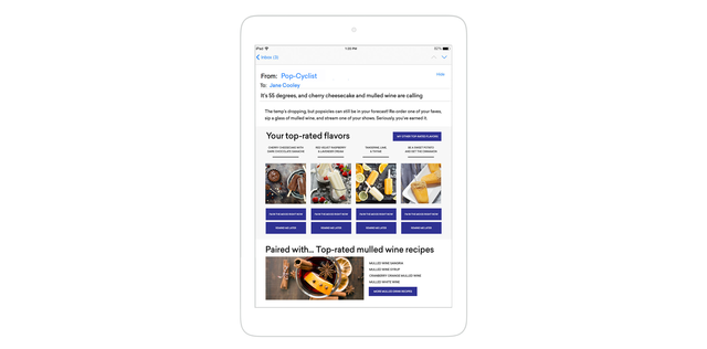 For example, Jane’s email below pulls in weather and recommended recipes available from public recipe APIs.