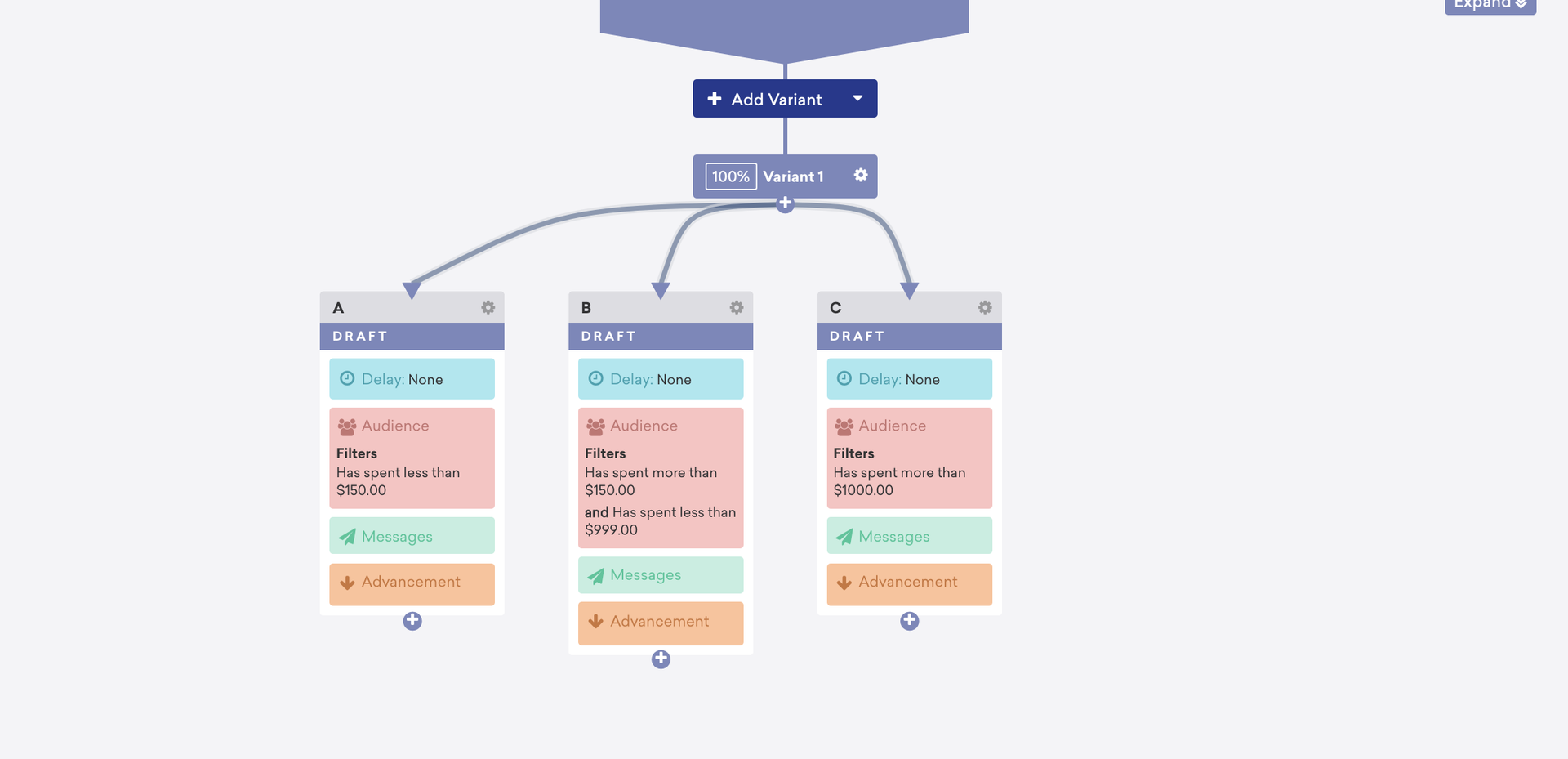 By creating these sorts of highly specific flows and getting as granular as possible, you can increase the chance of user engagement, while also increasing the likelihood of accomplishing your goal—which, in this case, is driving a purchase.