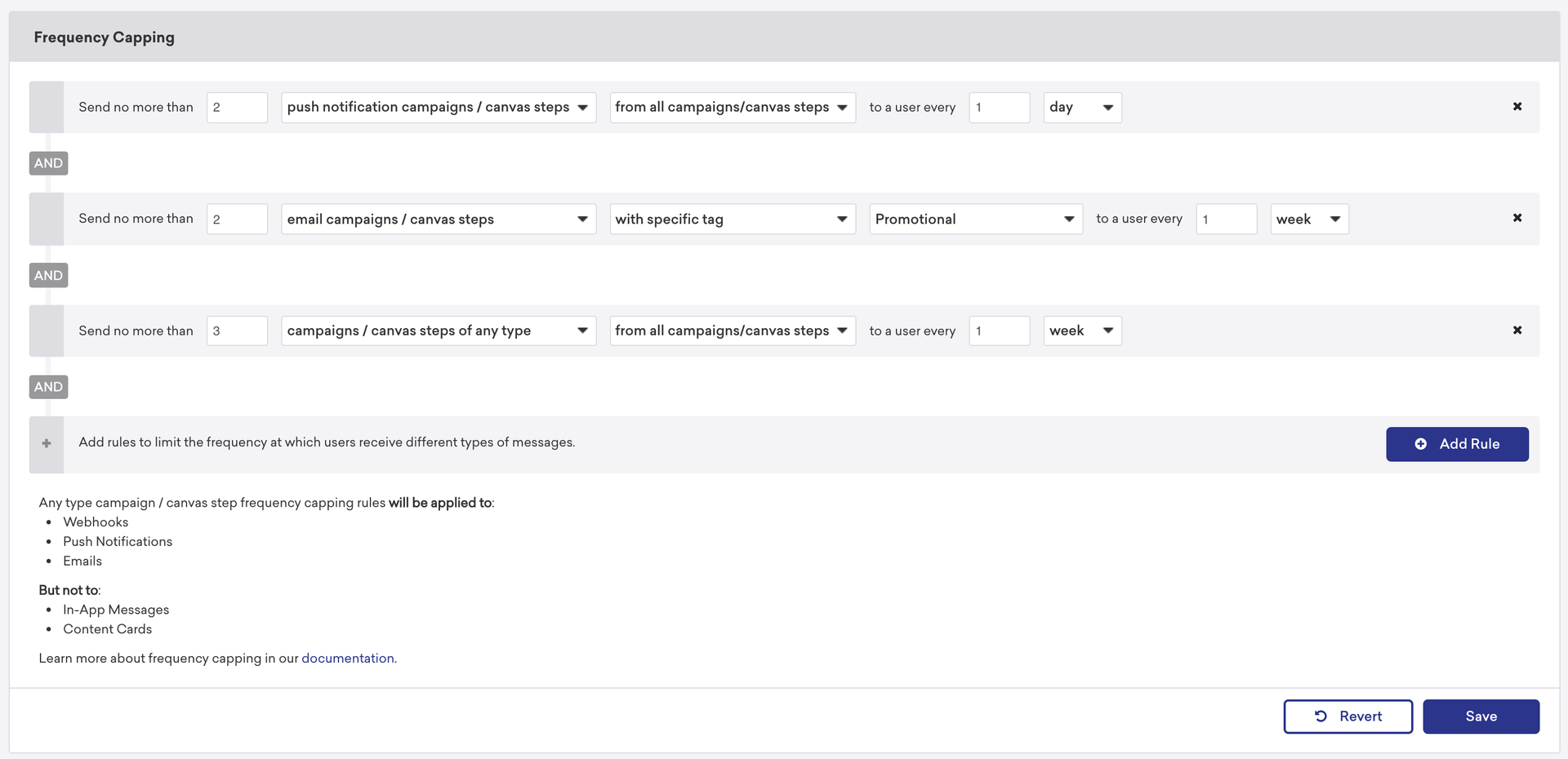 We’ve found over the years that sophisticated Braze users tend to have a strong tagging strategy, allowing them more transparency—and more control—in connection with their customer engagement efforts. If a brand tags all their campaigns within Braze, it becomes possible to add a segment to their lower-priority campaigns in order to rate-limit them. That, in turn, ensures that other, more important messages are seen first.