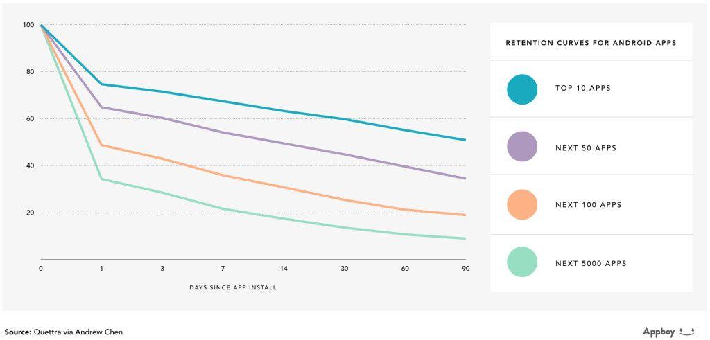 Most of the time, when someone downloads an app, they don’t stick around: the majority of apps lose 80-90% of new customers within 90 days. For most brands, these customer retention numbers are unsustainable in the long-term, threatening the success of their mobile efforts.